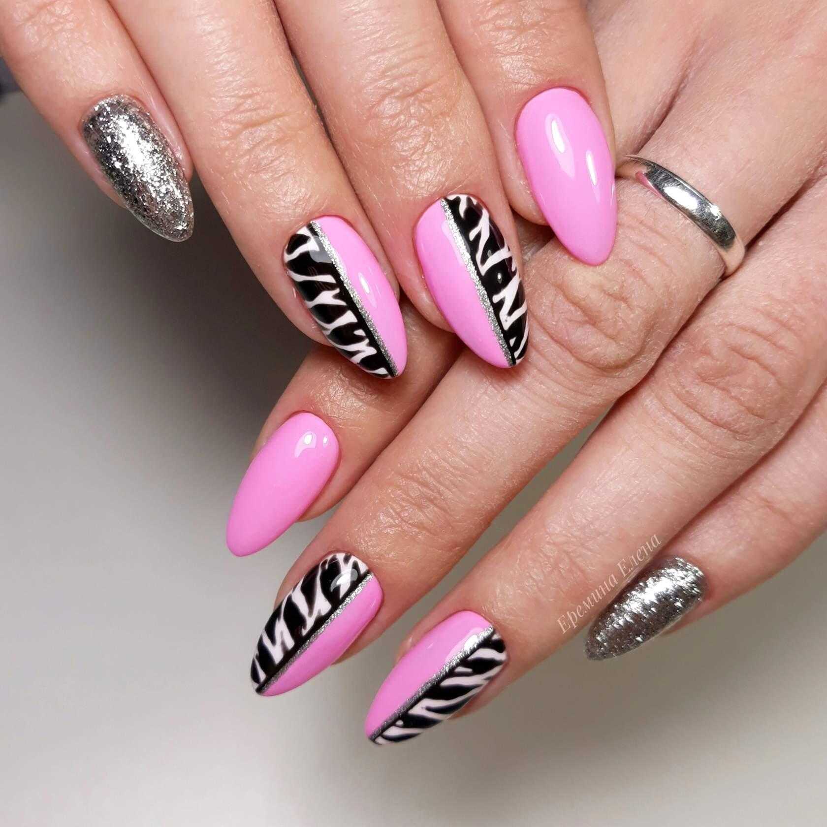 Притягивает взгляды своей максимальной контрастностью, гипнотизирует монохромностью — черно белый дизайн ногтей. Такое классическое сочетание двух противоположных оттенков не перестаёт быть популярным уже долгое время, в одежде, в интерьере, в маникюре, в аксессуарах. Черный френч, черные узоры, полоски, веточки на белых ногтях смотрятся очень эффектно. Можно использовать черную фольгу, поталь, черные стразы. Даже просто черные точки на белом создают интересный образ, необычный декор в крапинку. Животный принт с пятнами далматинца, черные полоски зебры, одни из самых модных, востребованных дизайнов.
