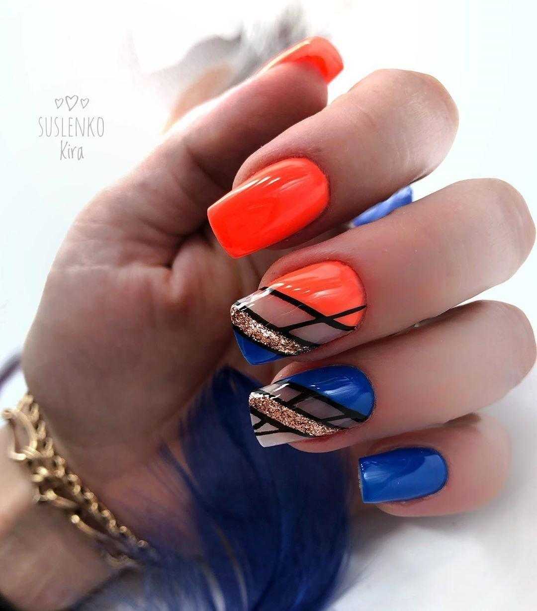 Несмотря на то, что для многих осень ассоциируется со скукой, скучным маникюр осень 2023 не назовёшь. И даже актуальный в это время синий, оранжевый и бордовый оттенки при грамотном сочетании подарят очень красивый и стильный результат.