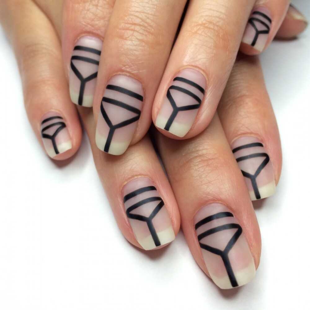- Чтобы выровнять ногтевую поверхность после создания дизайна, можно сначала заполнить негативное пространство прозрачной базой, просушить, а уже затем закрепить весь маникюр топом.
