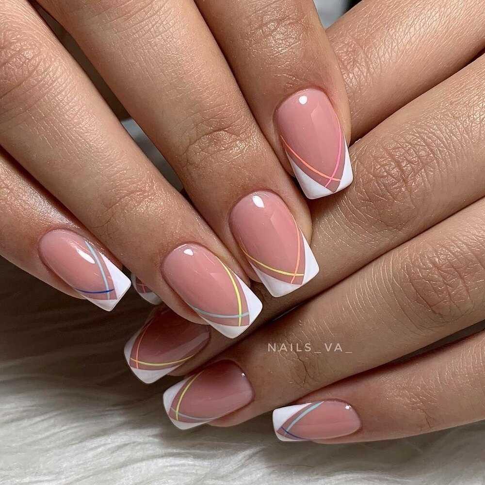 Элегантный френч. Речь идет о славноизвестной цветной подводке, разделяющей свободный кончик и пластинку во французском маникюре.