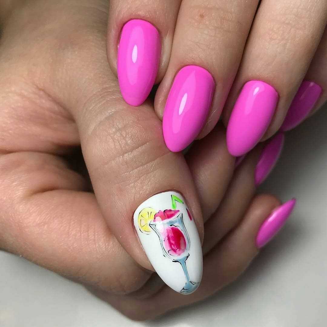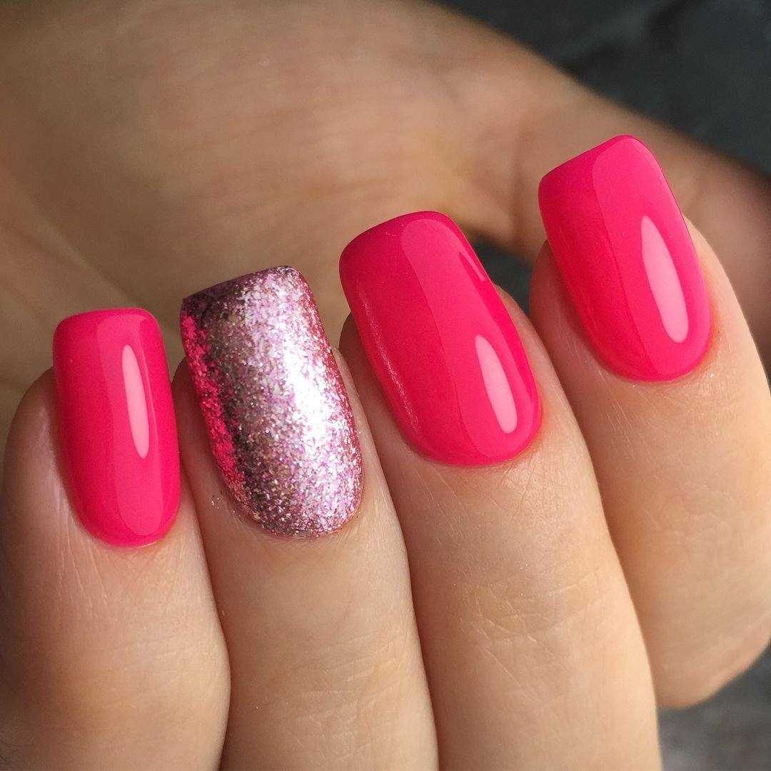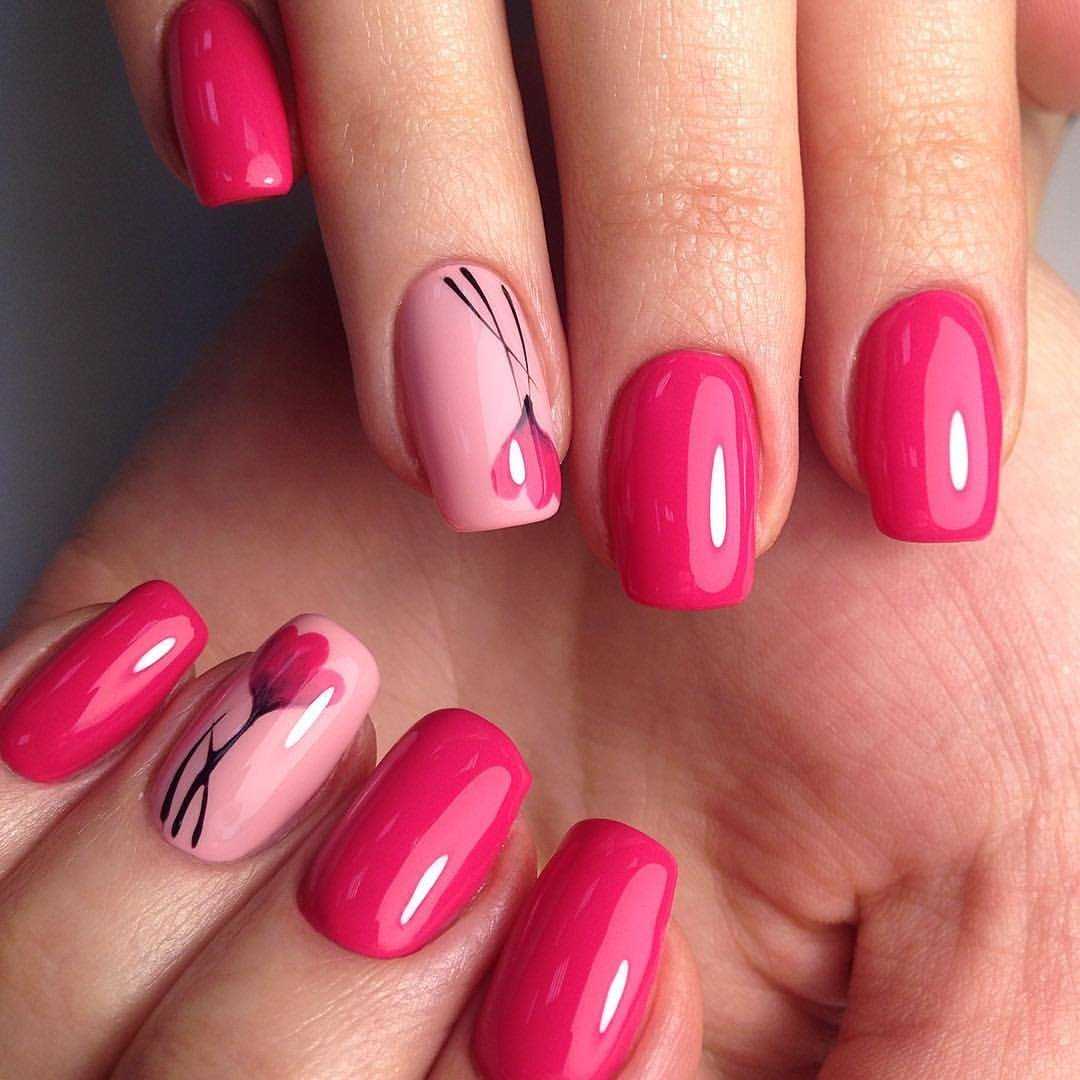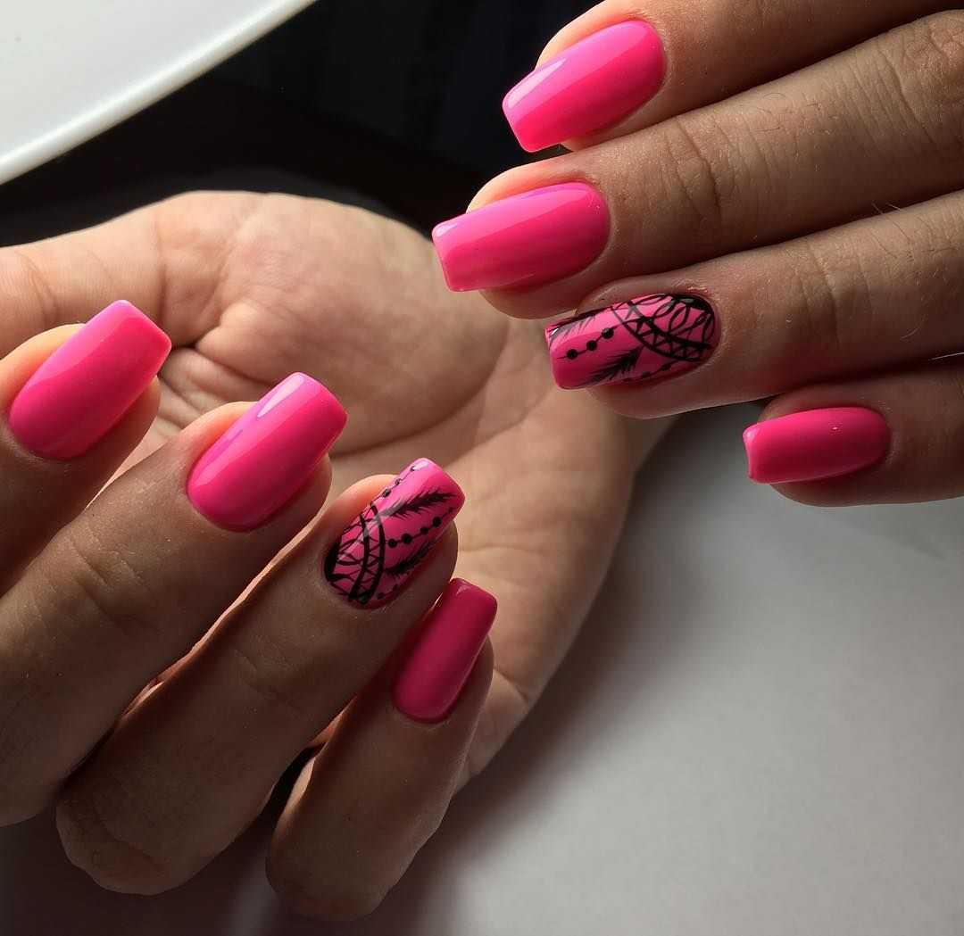 В списке модных тенденций снова ярко-розовый гель-лак. Такой маникюр сегодня все чаще встречается на фото у знаменитых блогеров. Он броский, стильный и очень крутой. Попробуйте сделать неоновый дизайн или покрасить ногти в сочный малиновый оттенок. С таким оформлением ноготков вы точно будете выделяться из толпы.