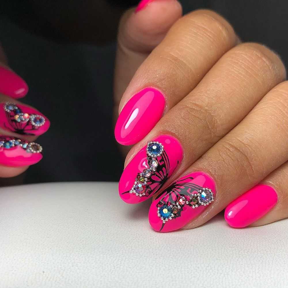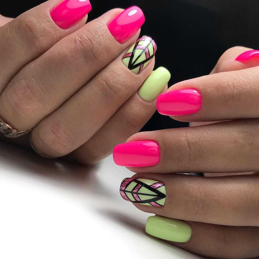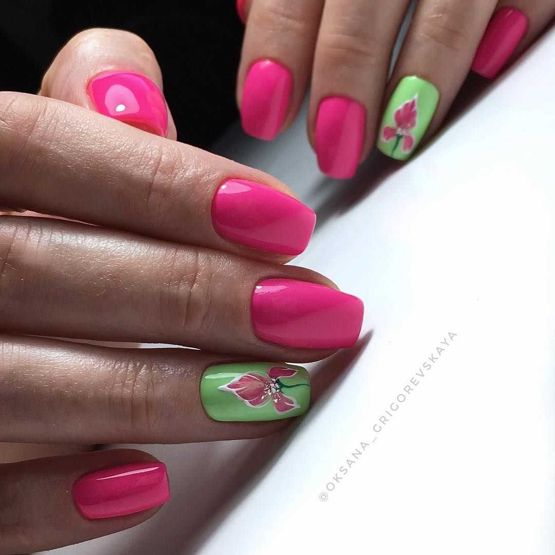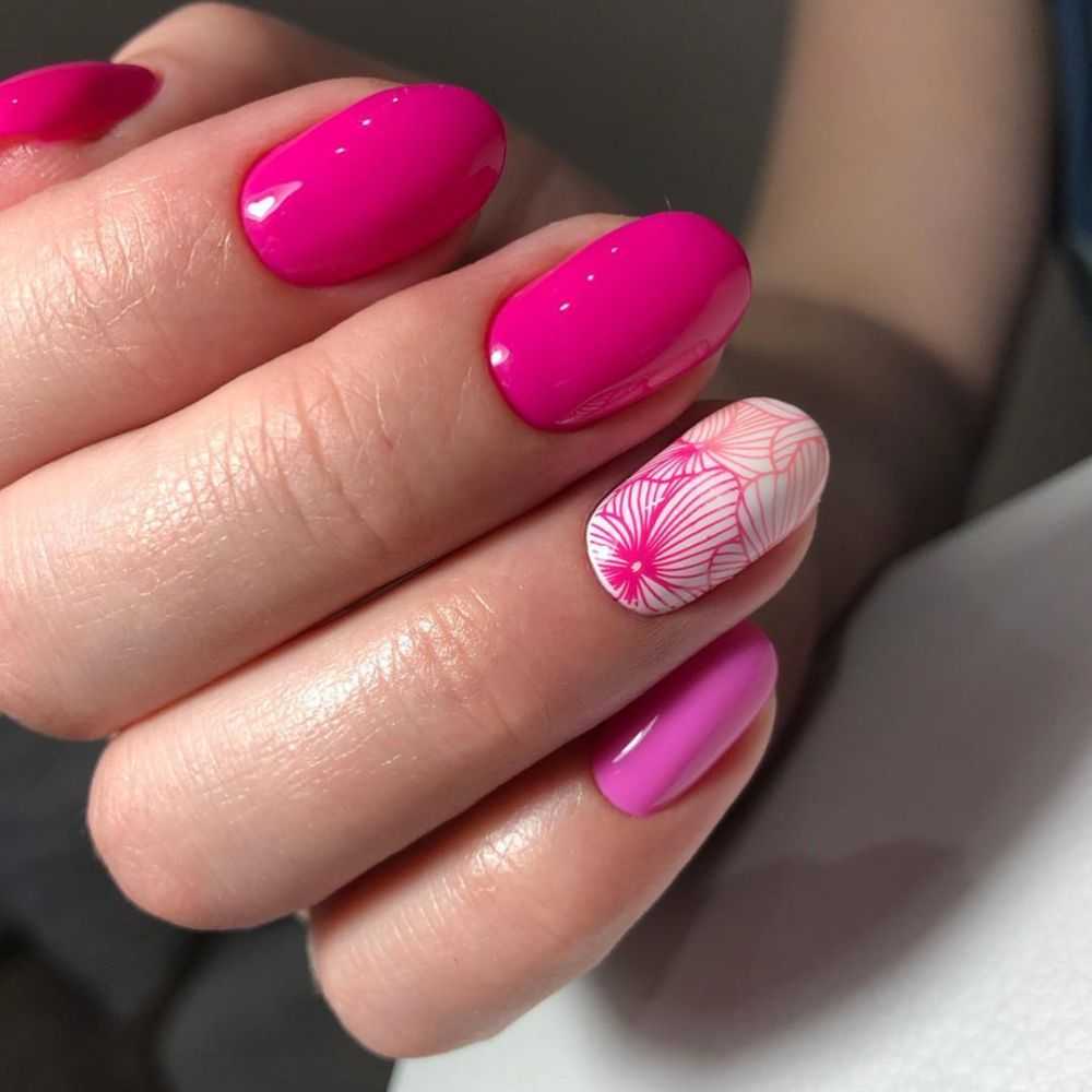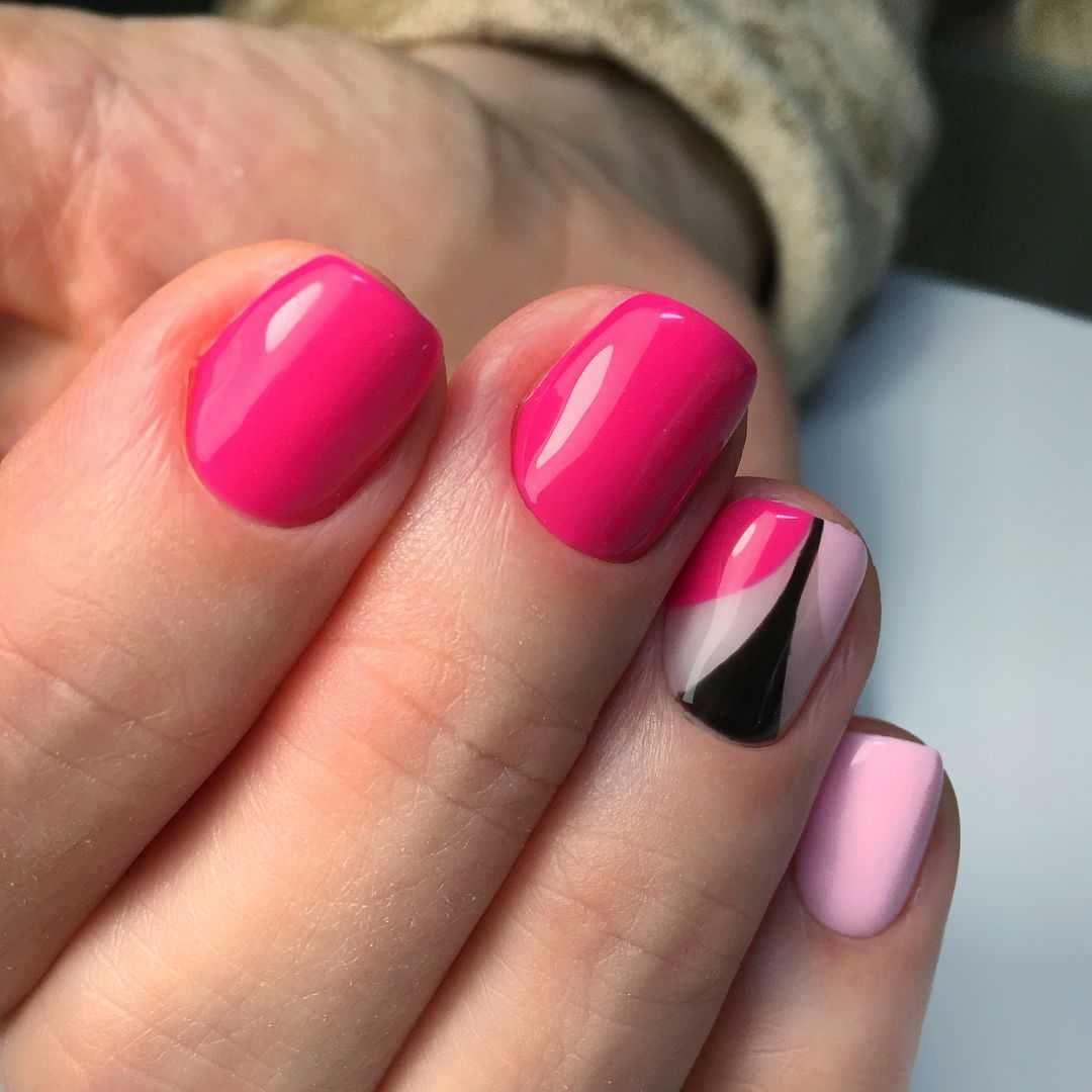 В списке модных тенденций снова ярко-розовый гель-лак. Такой маникюр сегодня все чаще встречается на фото у знаменитых блогеров. Он броский, стильный и очень крутой. Попробуйте сделать неоновый дизайн или покрасить ногти в сочный малиновый оттенок. С таким оформлением ноготков вы точно будете выделяться из толпы.