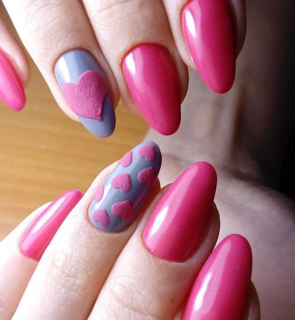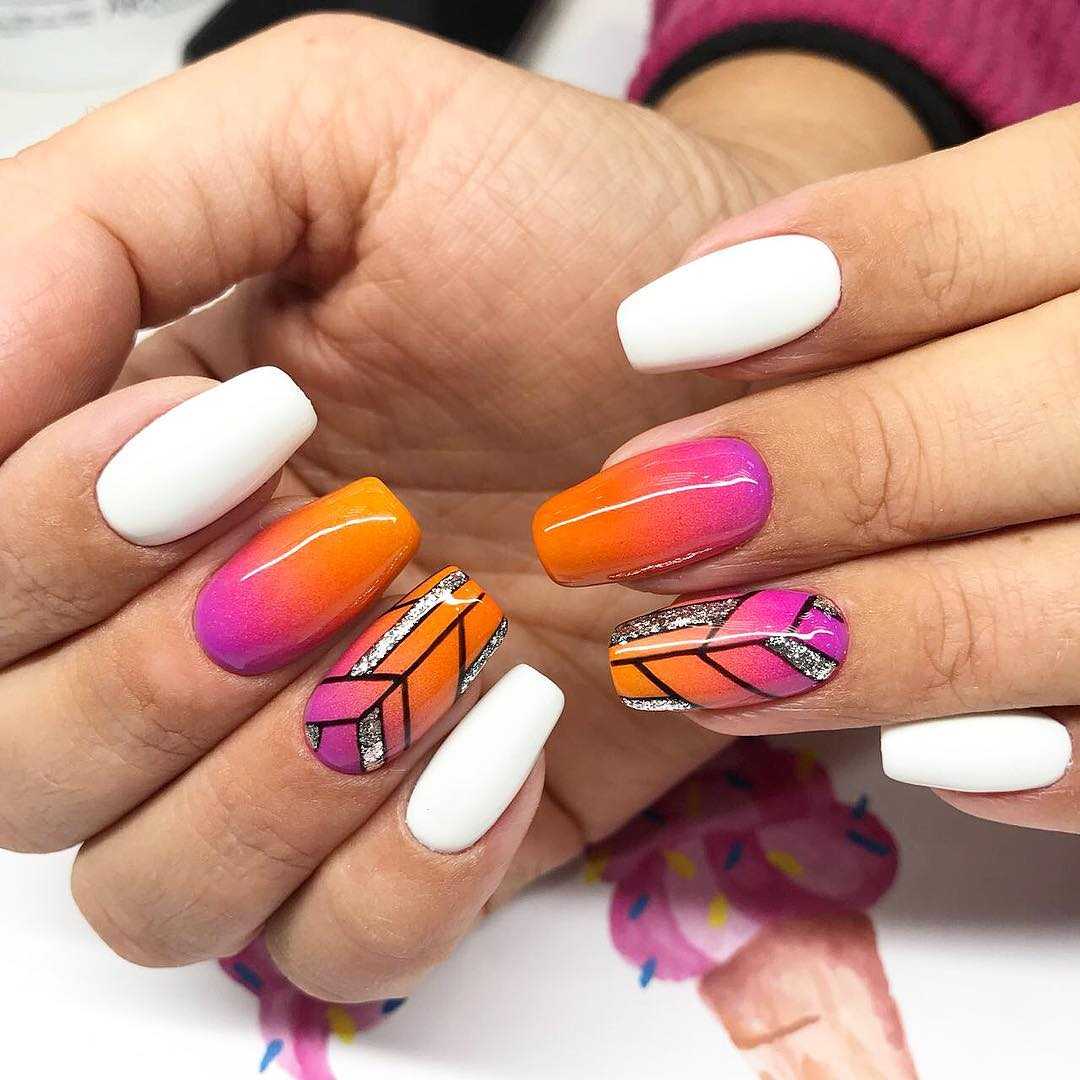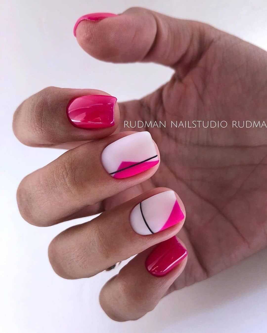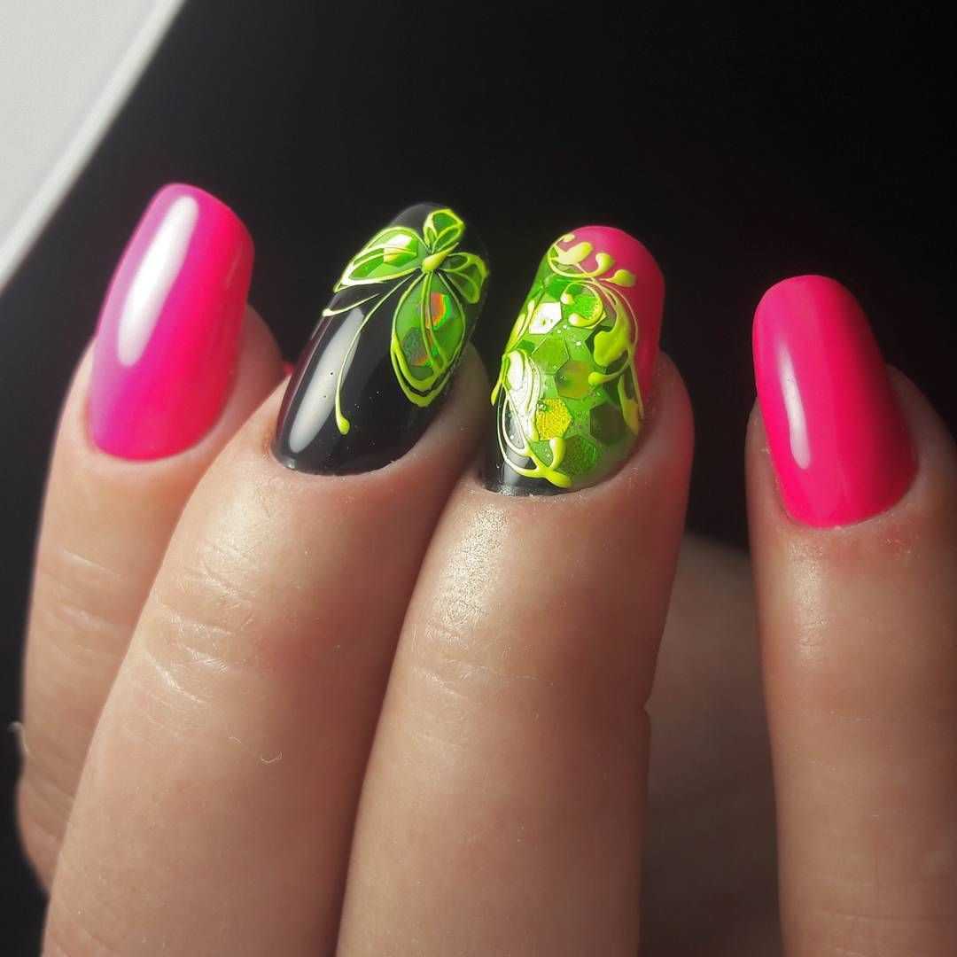 В списке модных тенденций снова ярко-розовый гель-лак. Такой маникюр сегодня все чаще встречается на фото у знаменитых блогеров. Он броский, стильный и очень крутой. Попробуйте сделать неоновый дизайн или покрасить ногти в сочный малиновый оттенок. С таким оформлением ноготков вы точно будете выделяться из толпы.