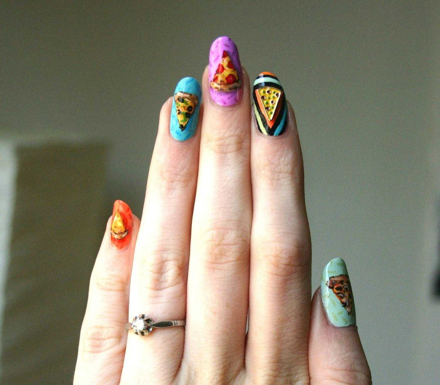 Оригинально выглядит сочетание с геометрией. Фигурки разных размеров всегда привлекают к себе взгляды и позволяют придать нотку стиля женскому образу. Еще необычнее смотрится абстракция — здесь рисунки абсолютно нелогичны, но очень интересны. Именно поэтому дамы любят их наносить на свои ногти.