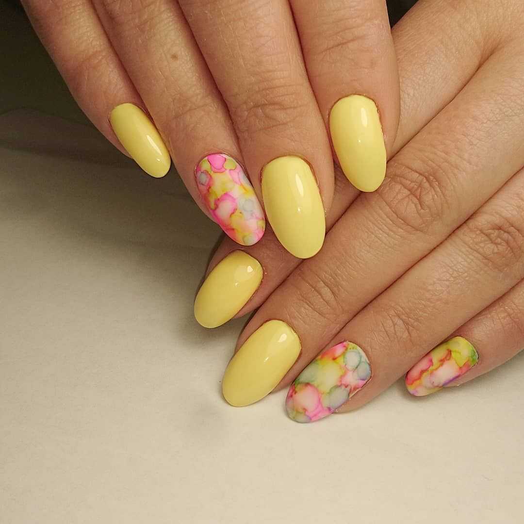 В тренде яркие, солнечные варианты, которые позволят создать великолепный Весенний маникюр 2023. Для них используется вся палитра желтого, от бледно-лимонного до ярко-канареечного.