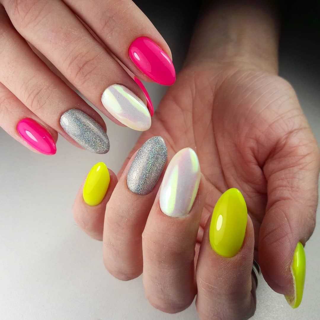 - Желто-лаймовый — самый сочный и востребованный оттенок лака для летнего маникюра, вы обязательно должны его попробовать в этом сезоне.