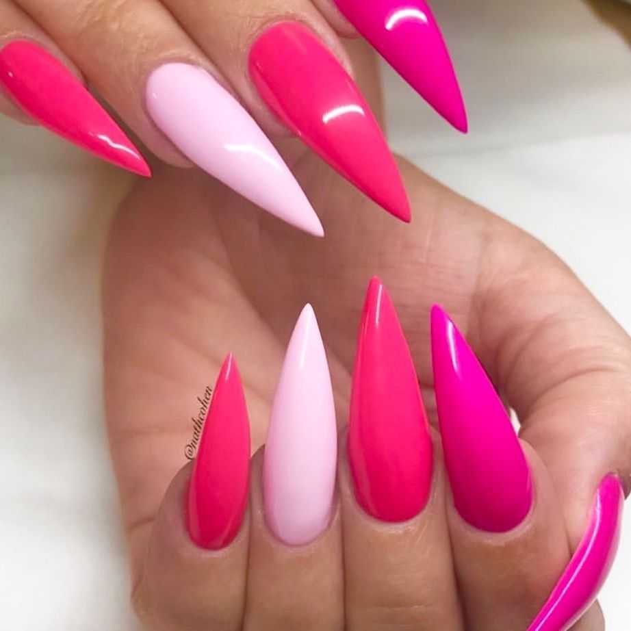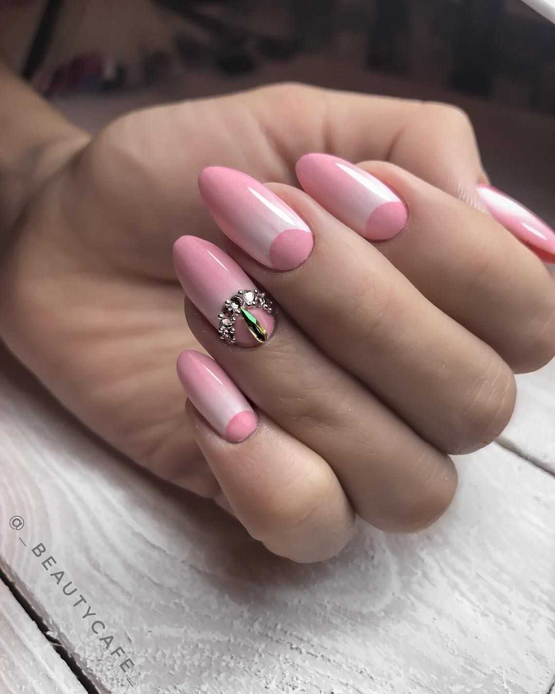 Френч актуален всегда, но в розовом цвете он смотрится гораздо круче. Отойдите от классики и покройте линию «улыбки» гель-лаком цвета фуксия. Также можно попробовать изменить форму края. Интересно будет смотреться треугольная «улыбка» или твист-френч. Во втором случае актуально сочетание розового с фиолетовым, синим, лиловым цветом.