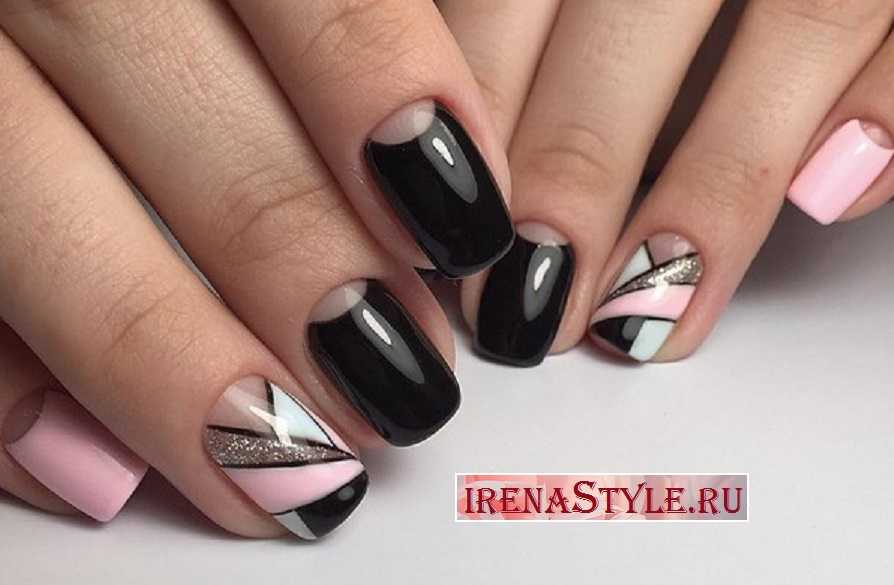 Очень популярным в 2017 году остаётся маникюр с геометрическим дизайном. В тренде различные фигурки: от треугольников до всевозможных зигзагов и полос, объединяющихся в единую композицию. Такой нейл-арт подойдёт для ногтей самой разной длины, но не стоит забывать о том, что в этом сезоне лучше отдать предпочтение коротким и средним ноготкам, воплощающим естественность.