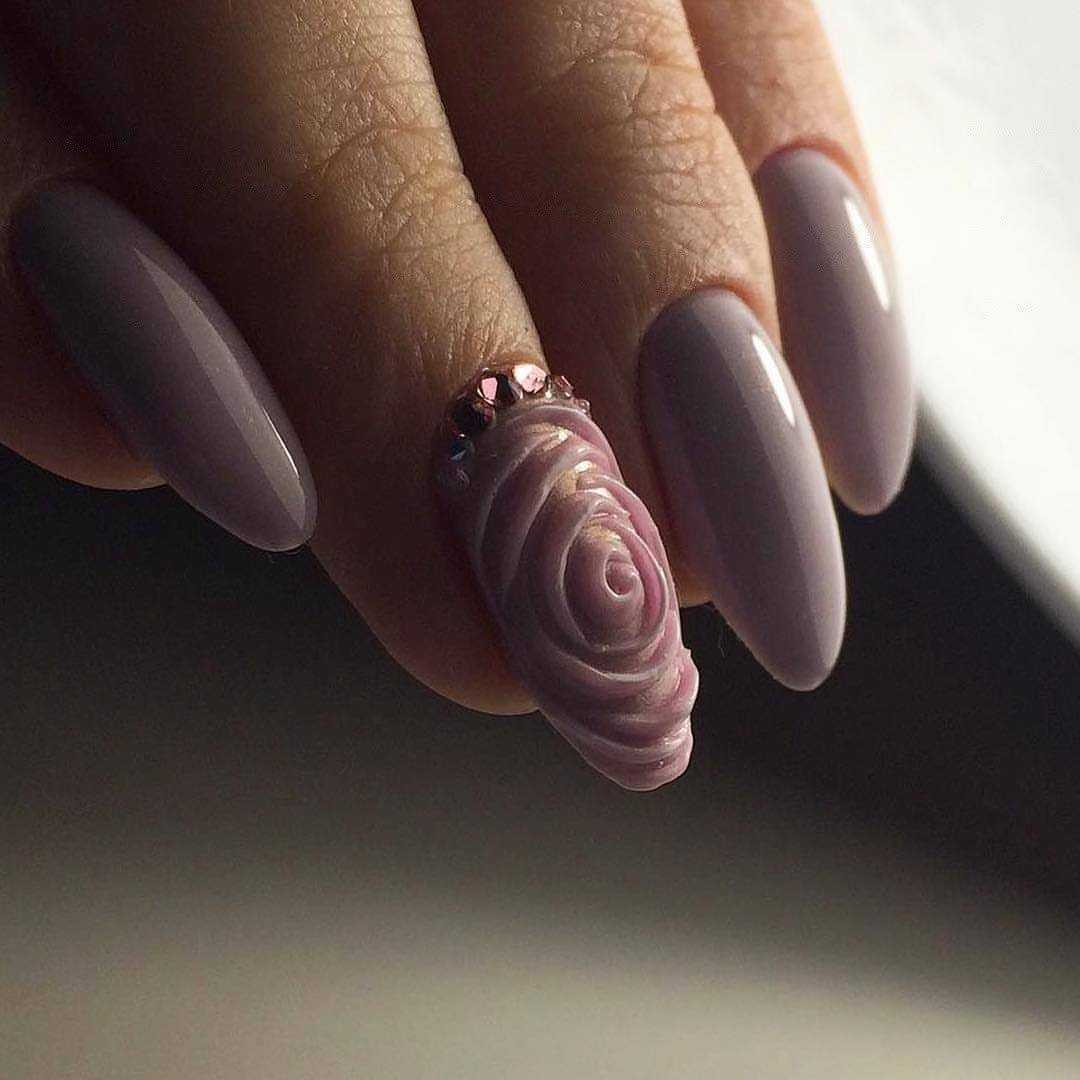 Особого внимания в дизайне с розами заслуживают нейл-арты с объемными и фактурными цветами. Розы достойны того, чтобы их тщательно прорисовывали, уделяя максимум внимания рельефности лепестков и переходам между ними. Профессиональные мастера используют для этого акриловый песок, густые гель-пасты различных оттенков. Так дизайн получается благороднее и насыщеннее.