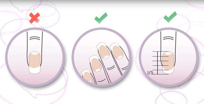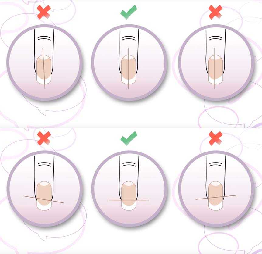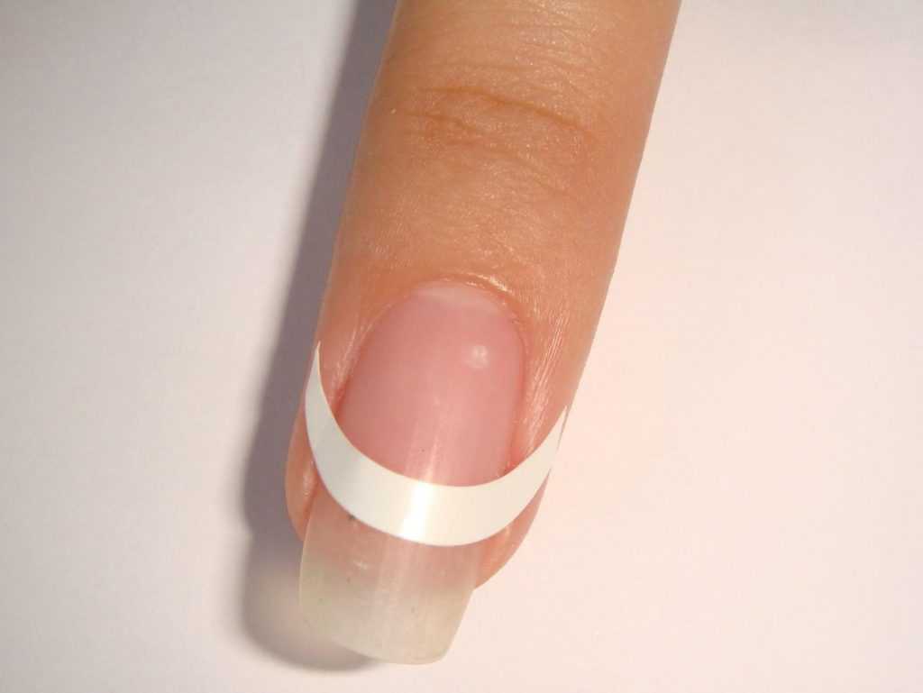 - Приложите к своему ноготку одну полосочку, чтобы обозначить, где у вас будет проходить линия для закрашивания.