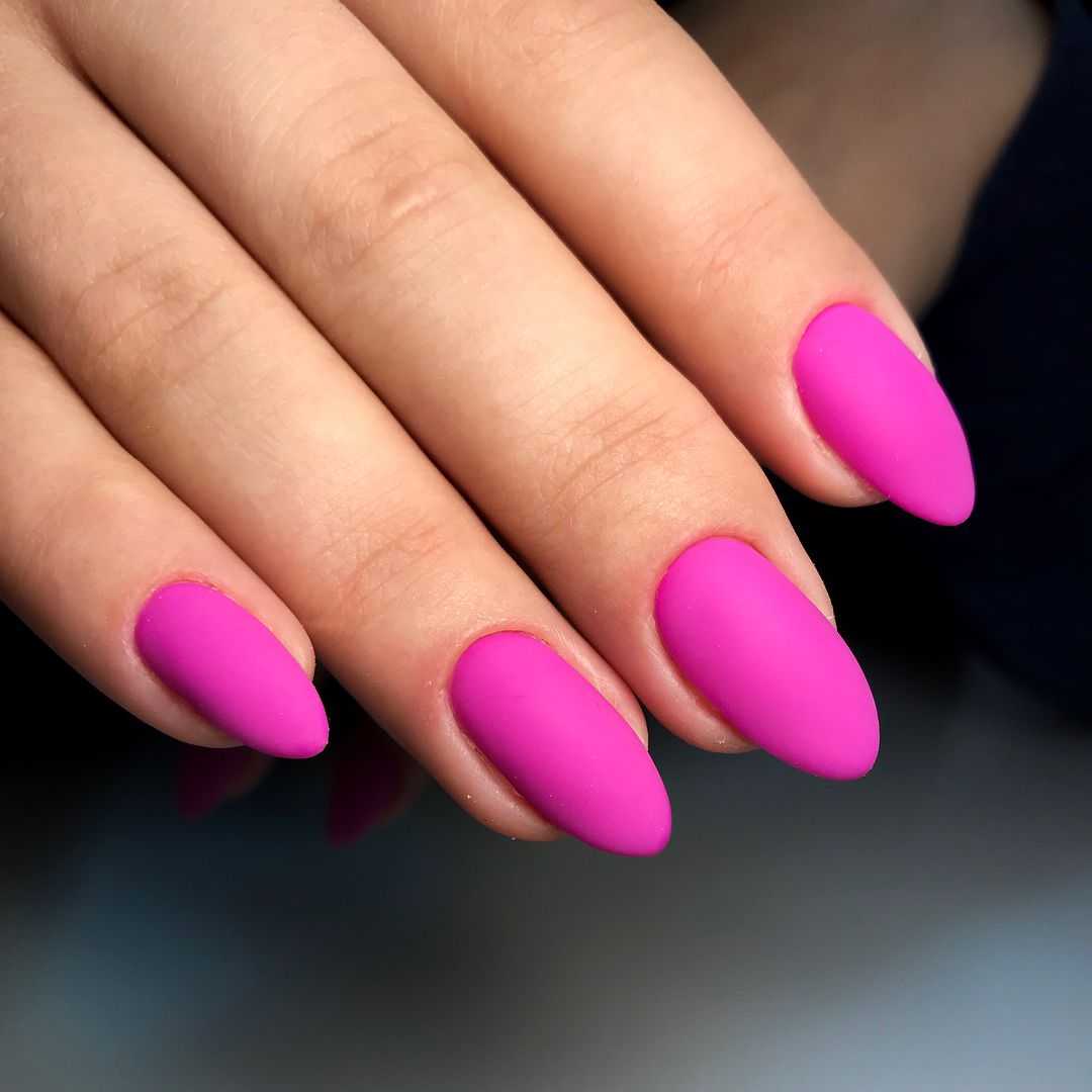 Ногти с матовым топом приобретают лаконичный вид, без намека на глянец. Сочетается с разными техниками. Выбирать лучше розовый цвет из темных и сочных оттенков. Матовый финиш маркий, может сереть на светлых тонах.