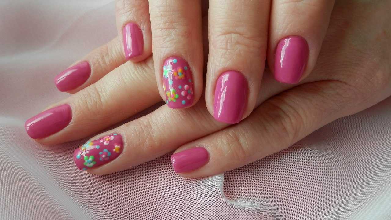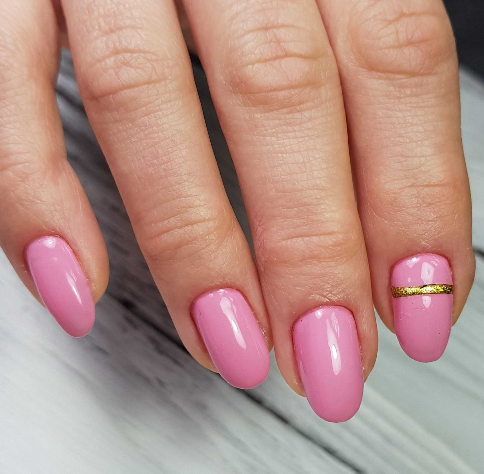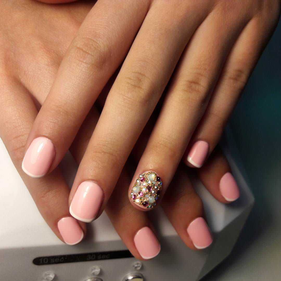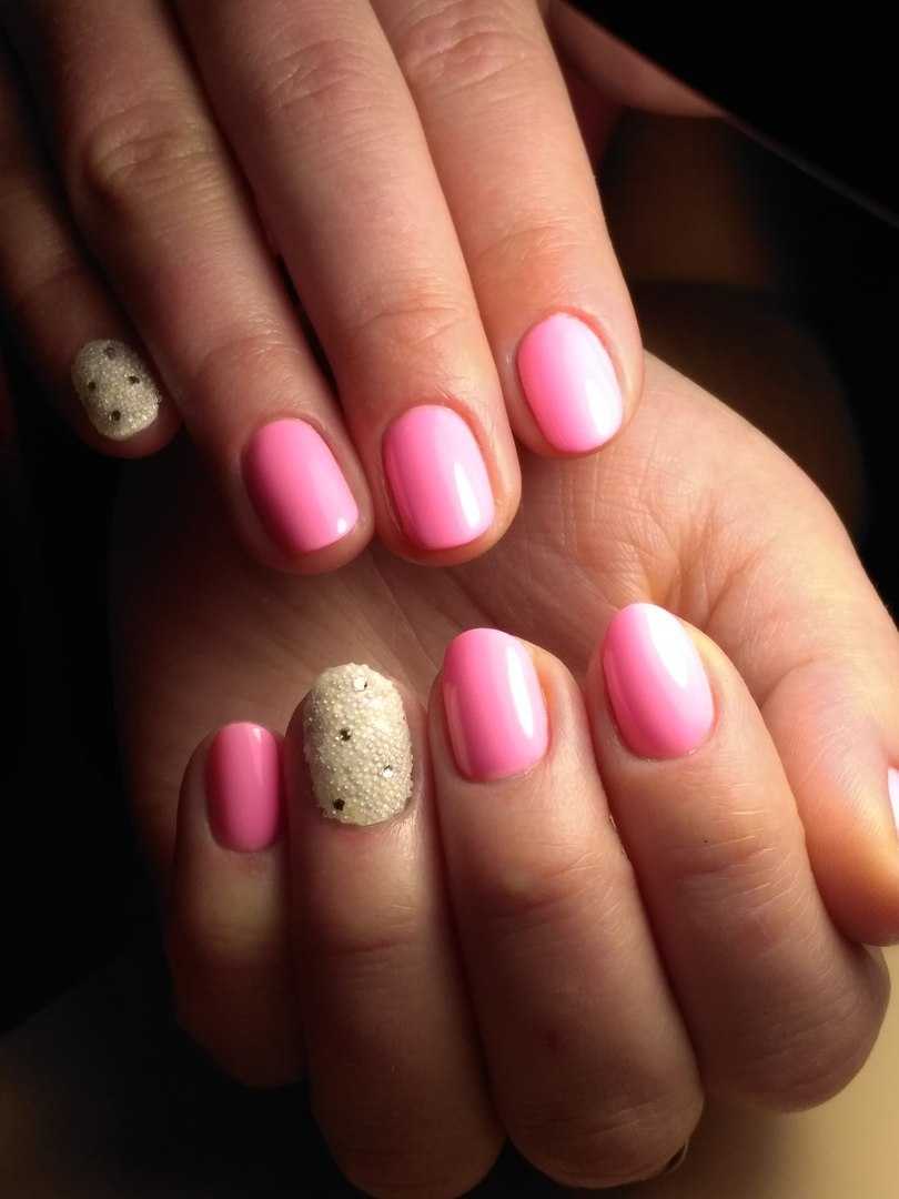Один из самых актуальных трендов нейл-индустрии – короткие натуральные ногти – идеально сочетается с маникюром в розовых тонах. Пудровые и нюдовые оттенки выглядят на таких ногтях элегантно и нежно, яркие – радостно и броско. В первом случае будет овал, во втором – квадрат.