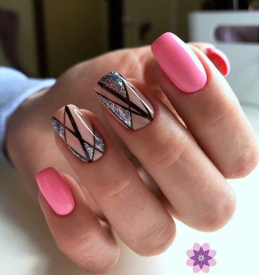 Ещё несколько замечательных идей розового маникюра с геометрией: