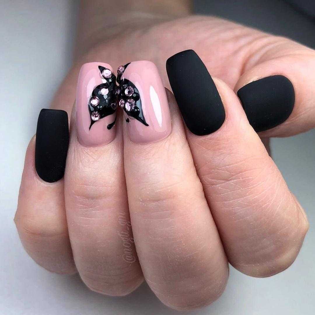 Бабочки могут быть как основной идеей, изюминкой монохромного маникюра, так и дополнением к другим видам дизайна, например, омбре или френча.