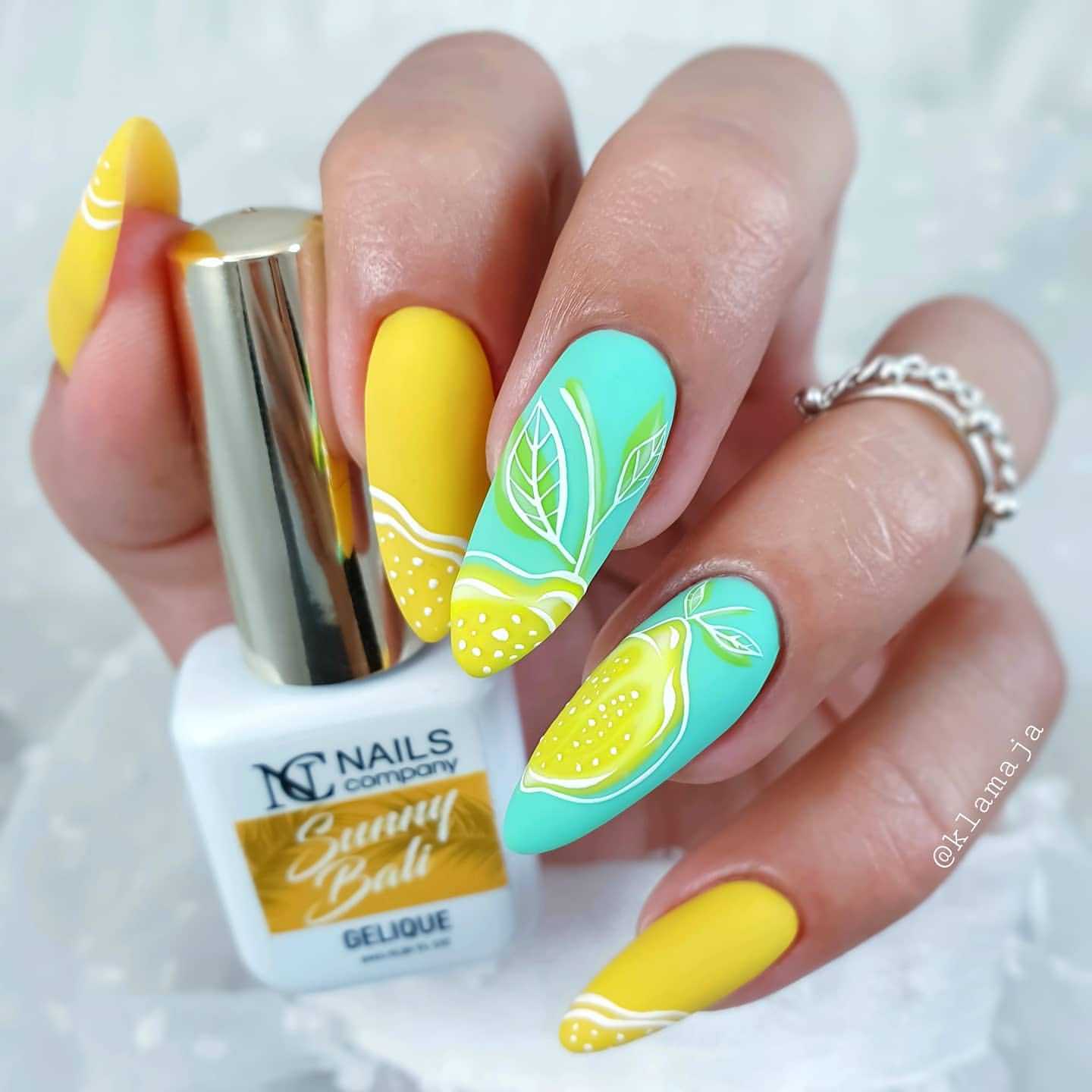 Маникюр мятный с желтым