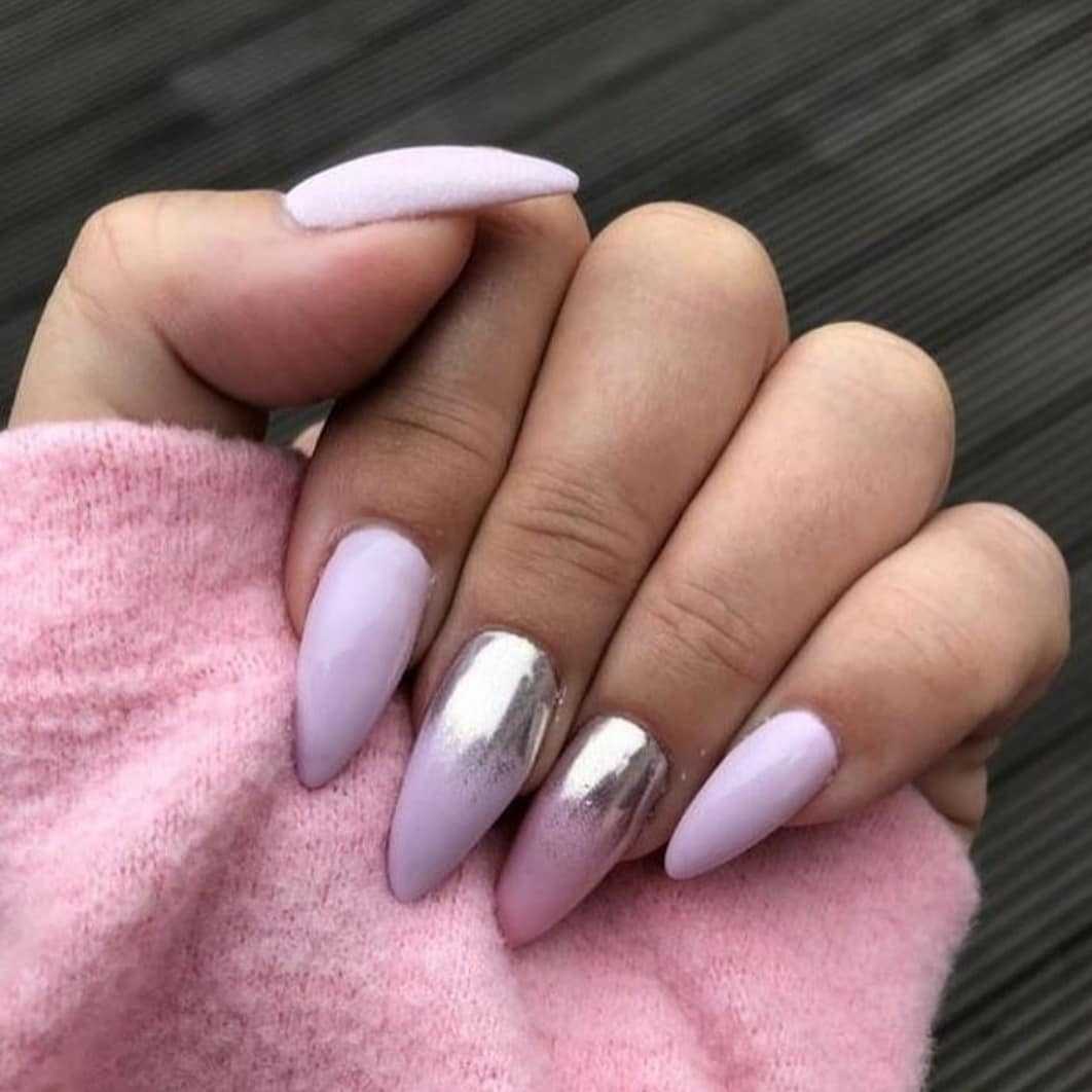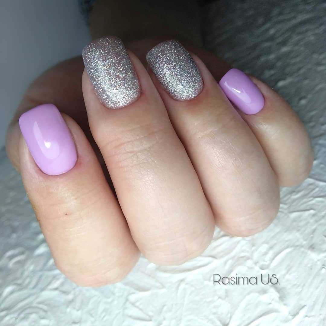 Но когда дело доходит до выбора сочетаний, многие просто не могут решиться, выбрать из двух. Если говорить о сиреневом фоне, то к нему подойдет и золото и серебро. Это может быть как рисунок, так и выделенный цветом пальчик.
