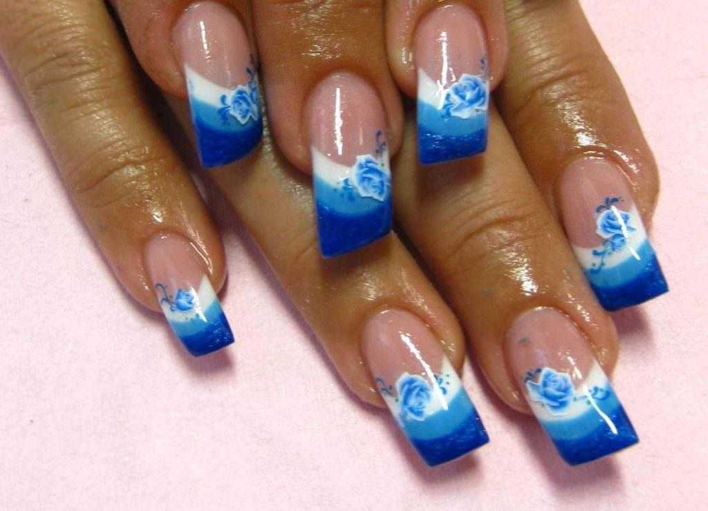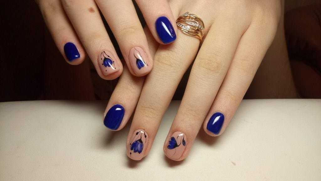 Маникюр с синими цветами