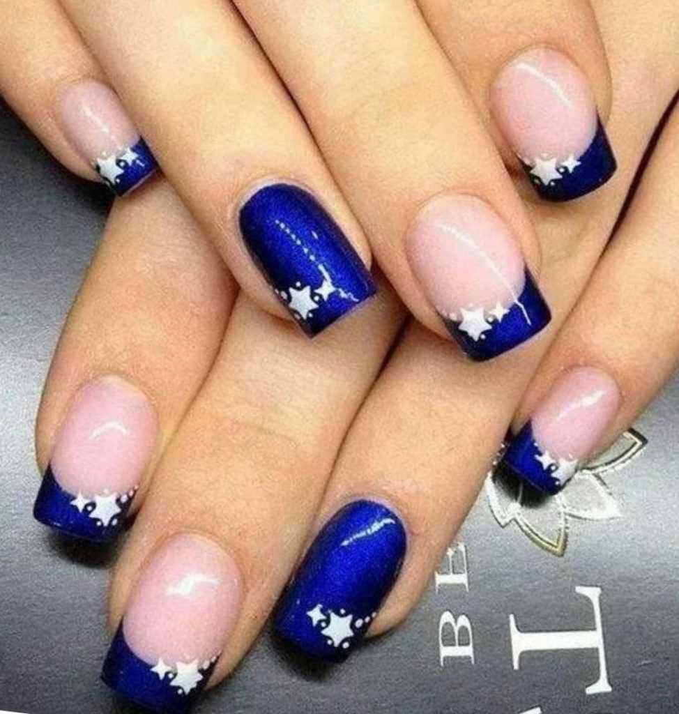 МАНИКЮР СИНИЙ С БЕЛЫМ