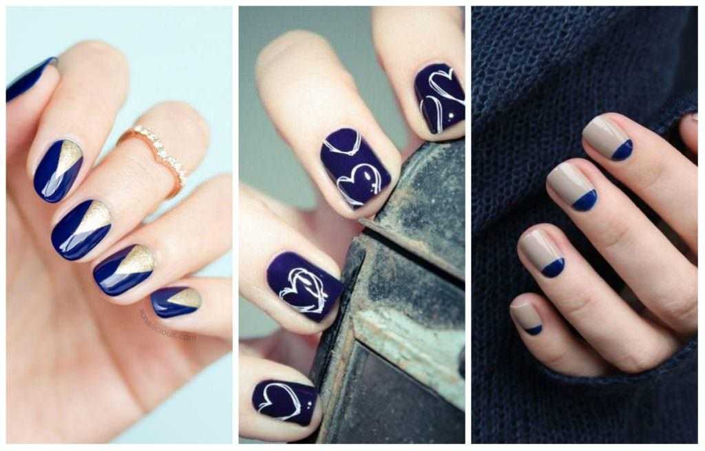 Синий на коротких ногтях: маникюра с дизайном