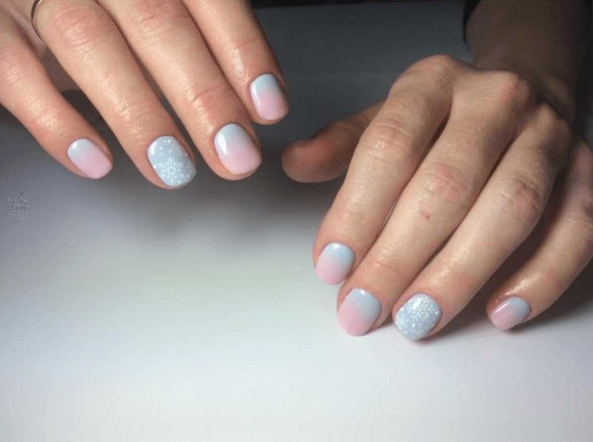 Похоже, что техника никогда не потеряет актуальность. Ведь именно с ее помощью получится сделать натуральные переходы, напоминающие зимний снег — ногти 2021 будут выглядеть по-настоящему празднично.
