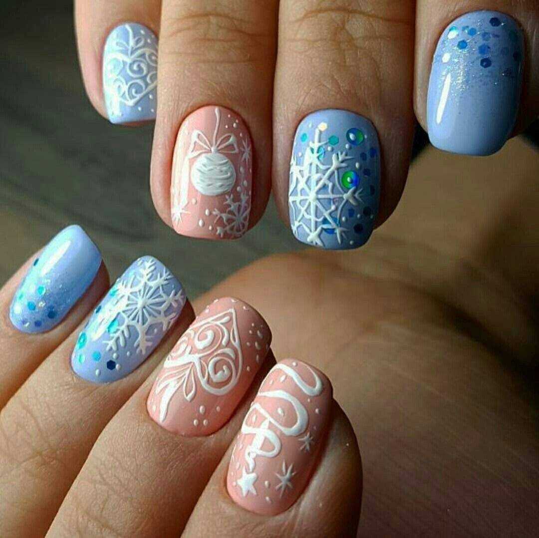 Кстати, матовое покрытие с таким маникюром еще больше его выделит, но и глянец подойдет! Не стоит забывать про мелкие детали, такие как шапки, шарфы, варежки или фонарики.