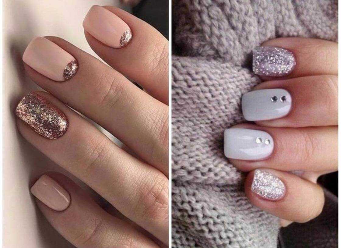 - если вы не любите художественного искусства на ногтях, тогда вам подойдут беспроигрышные варианты с акцентным выделением двух пальцев с помощью глиттера или втирки.