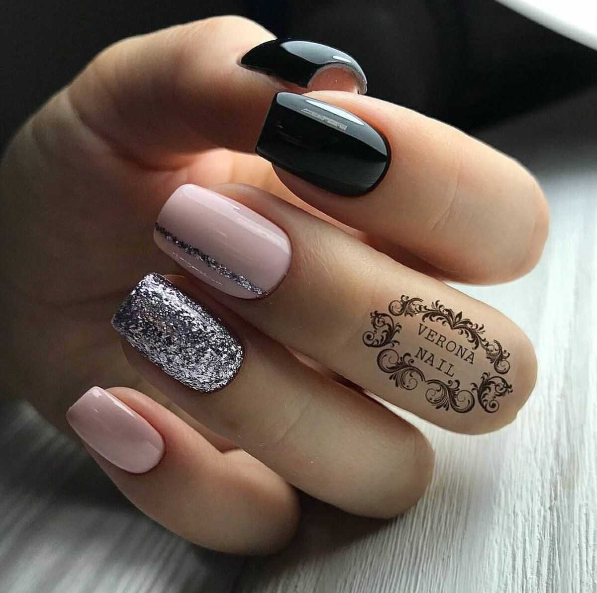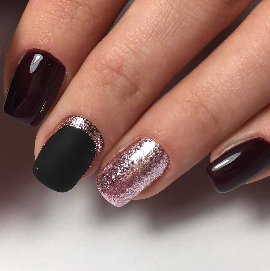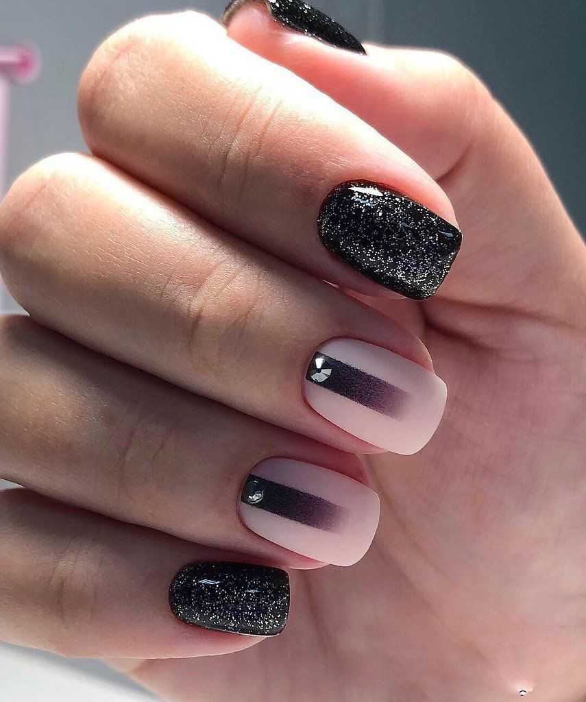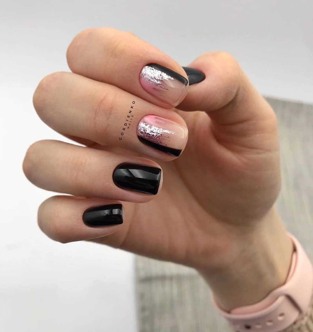 - создать градиентный маникюр с черным и розовым гель-лаком с блестками и шиммером