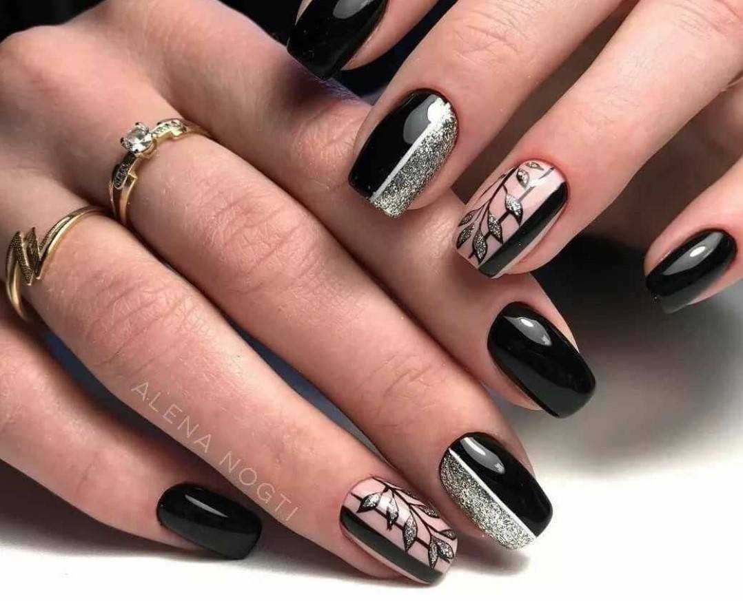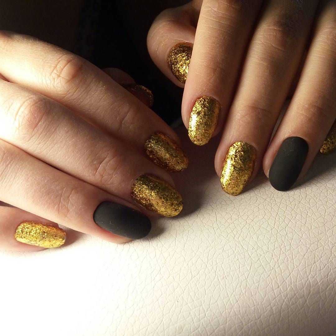 Сочетание черного и золотого цветов выглядит дорого и благородно. Такой маникюр не для повседневной носки, чаще всего он используется в торжественных образах. Дизайн ногтей обязательно должен гармонировать с остальным образом и аксессуарами.