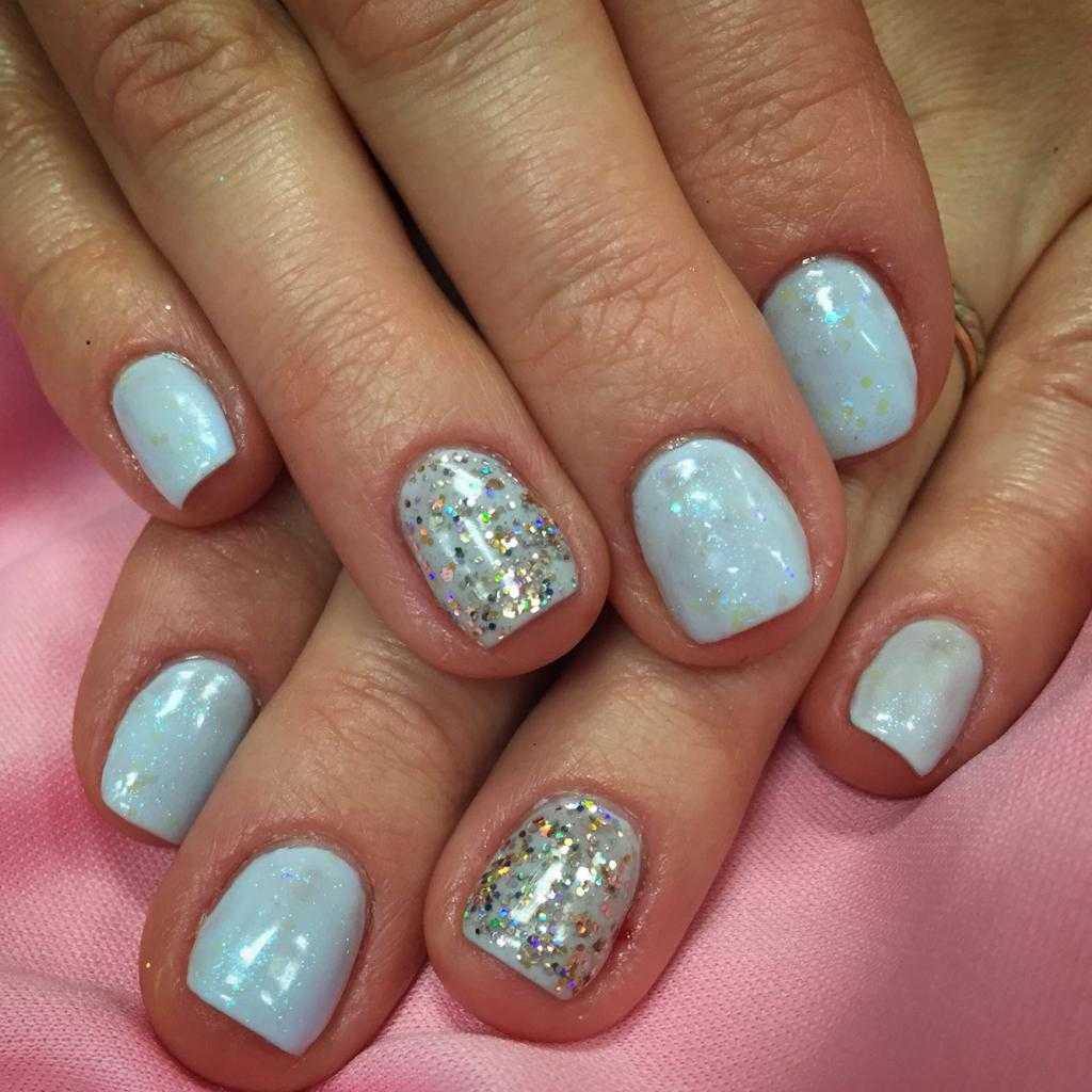 Такой маникюр подчеркнет женственность и не будет выглядеть типично. Блестки здесь станут изюминкой.