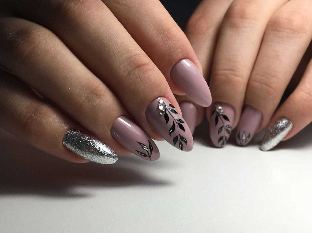 Миндальные ногти оптимально подходят для такого декора. «Миндаль» можно назвать универсальной, наиболее популярной формой. Пальцы становятся более утончёнными, женственными. Благодаря зауженной форме они будут хорошо смотреться с любым дизайном — втиркой, фольгой, геометрическими рисунками, узорами, вензелями, поталью.
