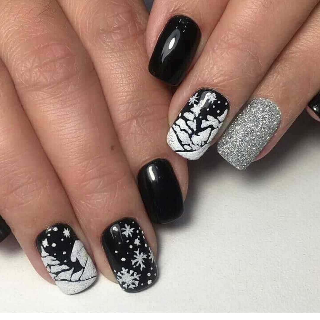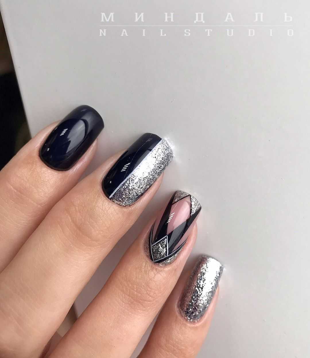 Среди актуальных идей потрясающие вариации френча, оригинальные идеи с геометрическими элементами и шикарный маникюр с декором из страз, чёрно-белые ноготки с серебристыми и золотистыми дополнениями, а также потрясающие примеры оформления бархатистого покрытия. При этом ваш нарядный маникюр совсем не зависит от длины ногтей. Вы без труда подберёте идеальный вариант для своих пальчиков и любого образа.