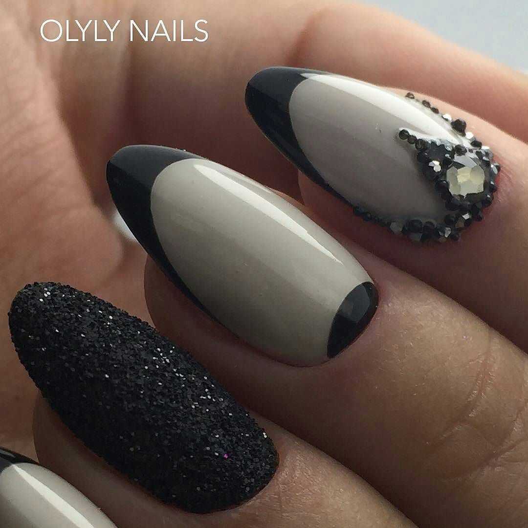 Чтобы на длинных ногтях черный цвет не выглядел вульгарно, важно правильно подобрать форму, и отнестись к этому с должным вниманием. Черный цвет акцентирует недостатки ногтевой пластины