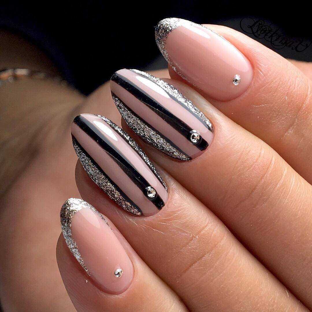 Такой дизайн ногтей производит большое впечатление. Вы можете нарисовать разные полоски на каждом ногте или сочетать точки и полоски. Выглядеть будет элегантно.