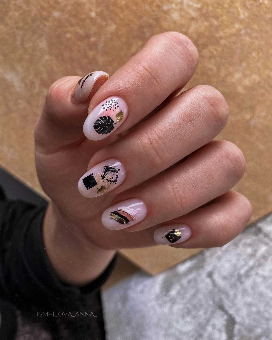 Оригинально смотрится и черно-золотой маникюр в мраморном стиле. Он сделает совершенным любой вечерний образ.