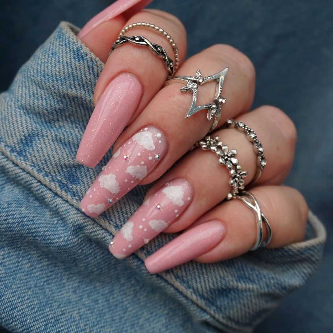 Форма при этом может быть разная, кстати именно она влияет на общий внешний вид рук. Поэтому перед ее выбором стоит проконсультироваться у мастера и решить, что будет лучше. На длинные ногти летом хорошо подойдет маникюр облако. Здесь сам ноготок может выкрашиваться в голубой, синий, цвета индиго, а затем в верхней части рисоваться облака.