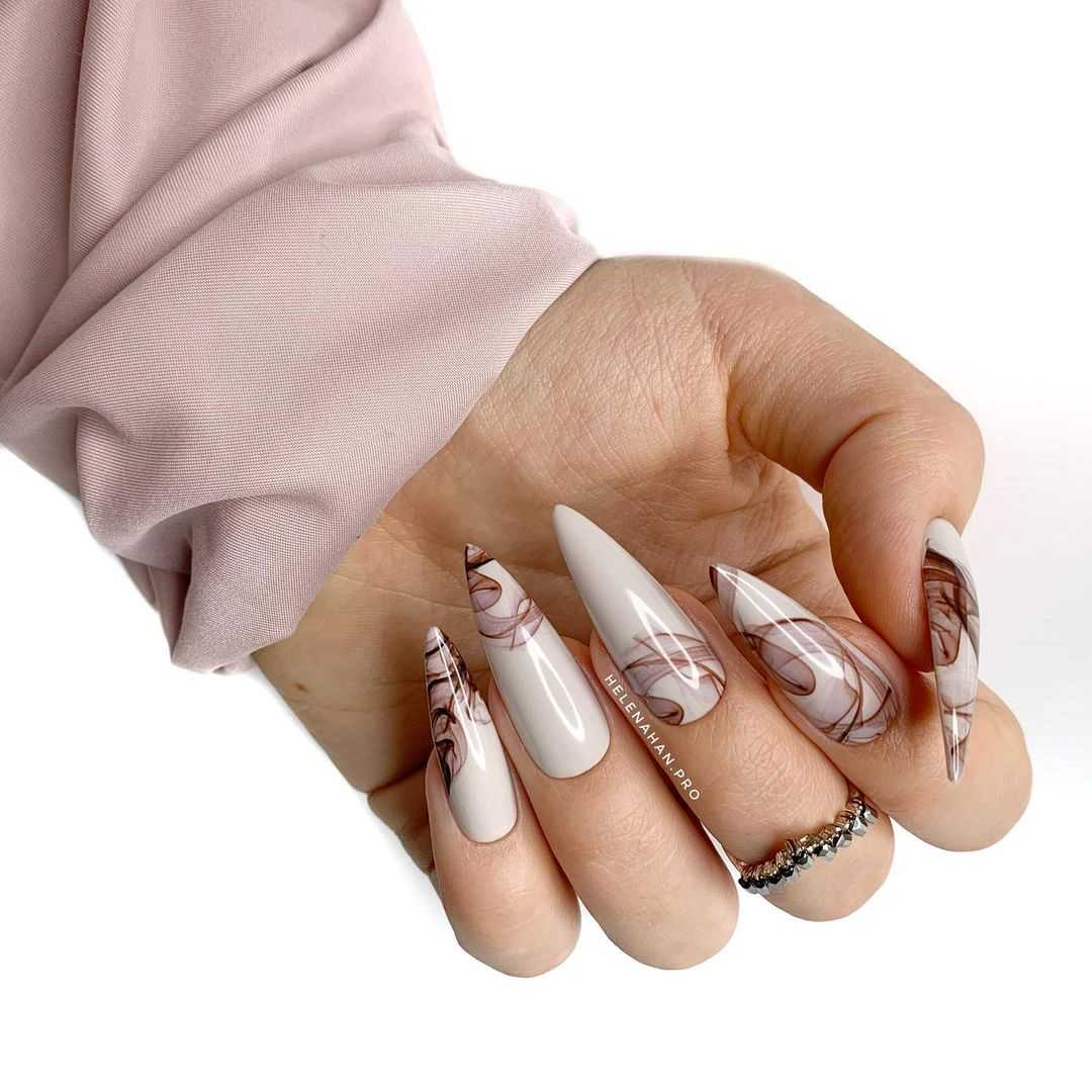 В этом дизайне наблюдается имитация мрамора. Красивые узоры и завораживающие переливы оттенков завоевывают сердца девушек каждую весну. В цветовой палитре нет ограничений. Вы можете выбрать как черный, так и молочный цвет
