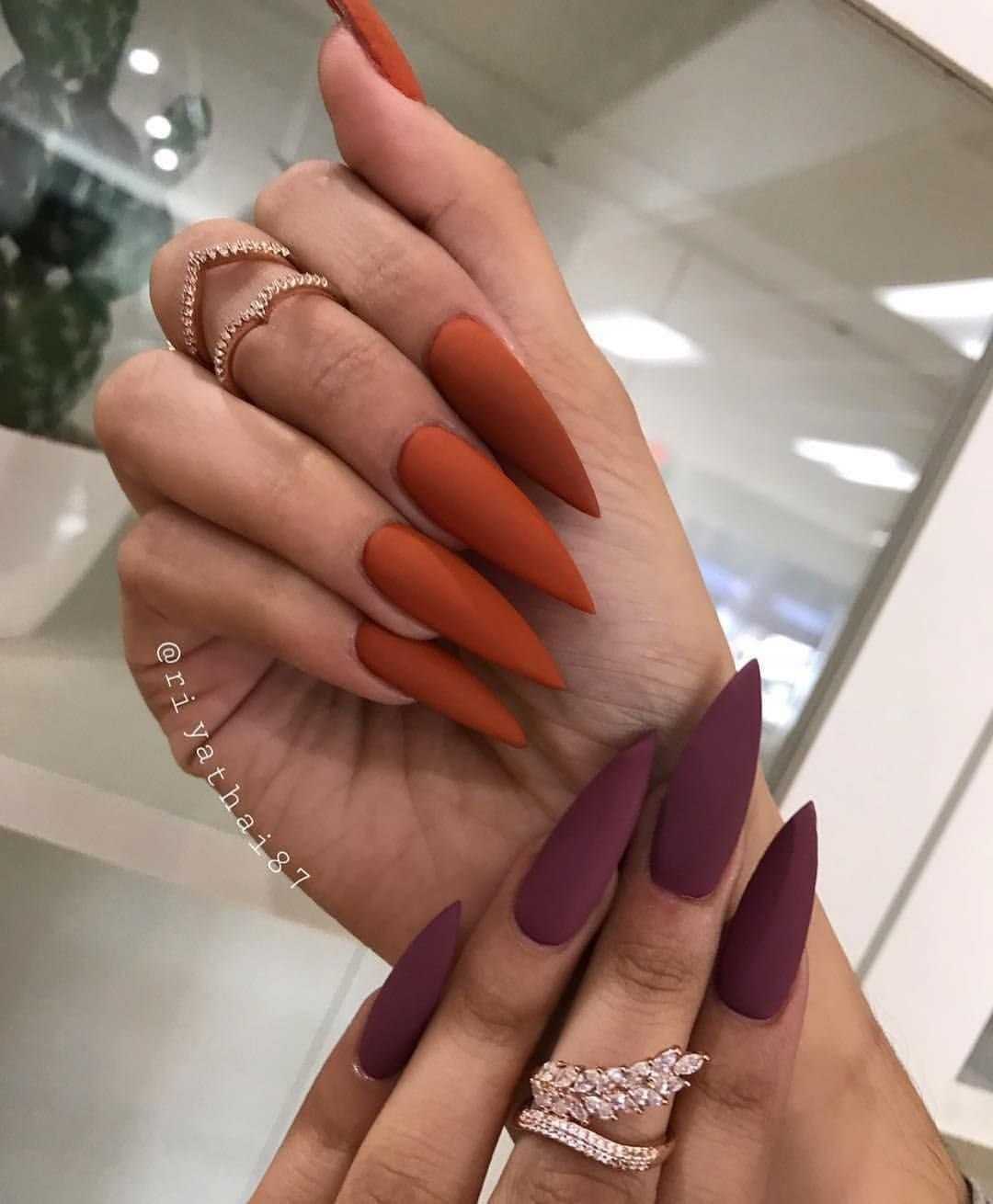 Инстаграм-хит, который блистает на вечеринках, но не так красочно работает в повседневной жизни. Эта форма ногтей – более заостренный и решительный вариант миндалин. Рекомендуется обладательницам тонких пальцев и длинных ногтей (хотя их всегда можно нарастить). Заостренные ногти смотрятся феноменально, особенно в выразительных цветах и с использованием блестящего смелого декора.