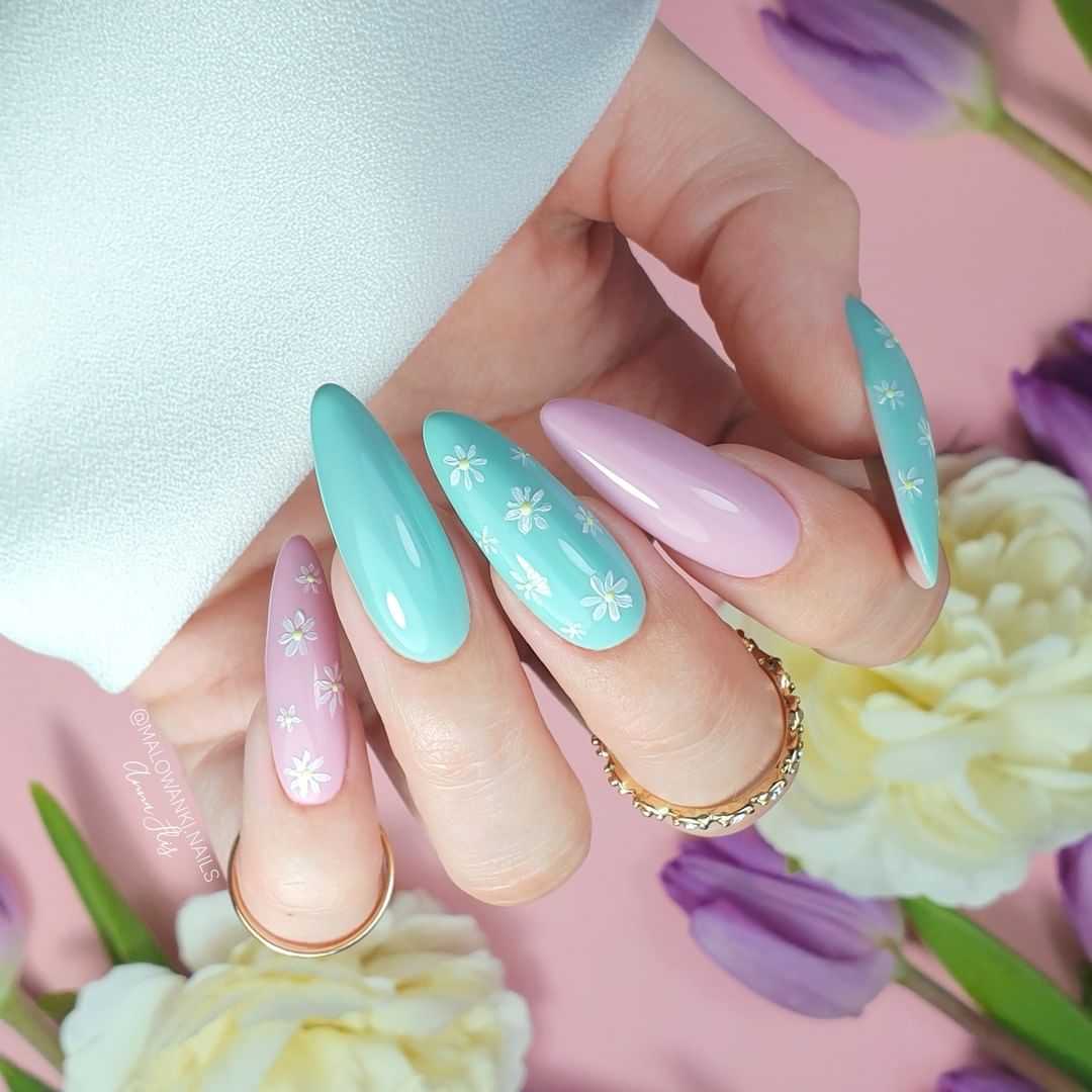 Мятные ногти с любым стилистическим рисунком обратят на себя внимание!