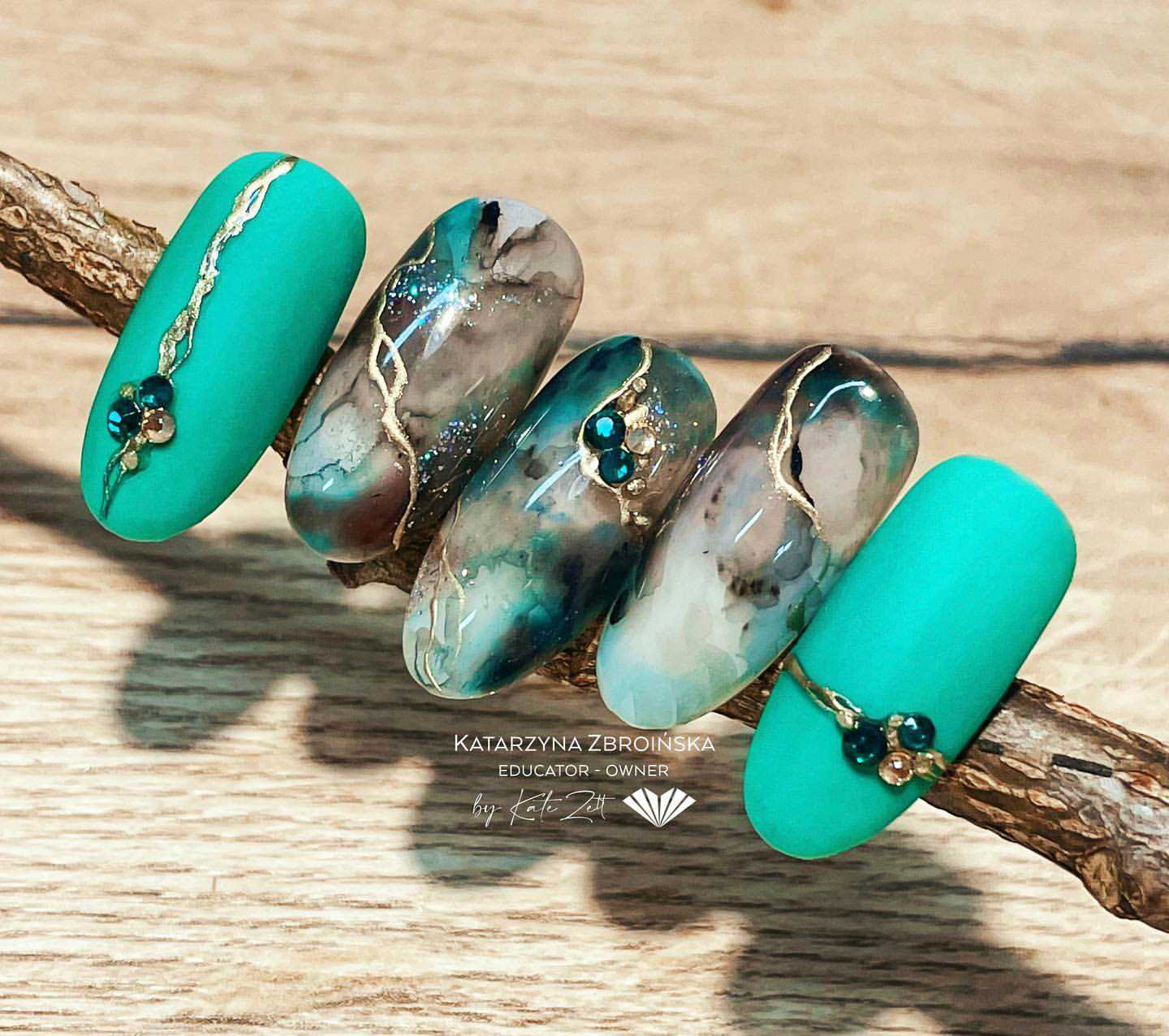 ЦИТАТА! Мастер нейл индустрии Елизавета Содановская говорит следующее: «Смело дополняйте мятные оттенки лаков яркими бликами, если форма ваших ногтей имеет миндалевидное очертание, вам подойдет геометрический рисунок, который как раз таки подчеркнет необычную форму ногтевой пластины».