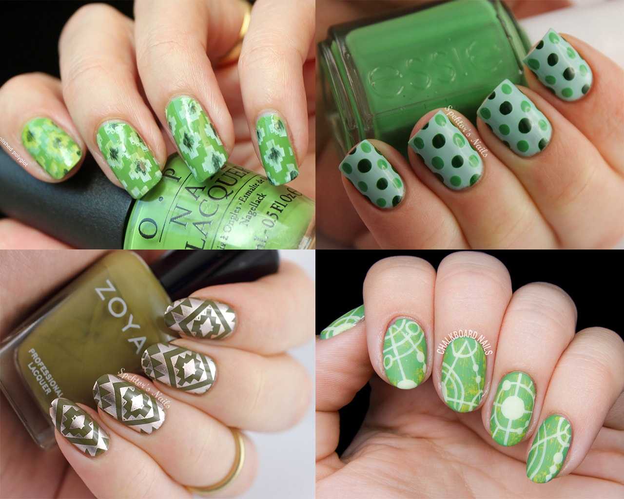 Очень смелый вариант дизайна для творческих натур. Просто накрасьте все ногти разными цветами. Используйте оттенки зеленого или сочетайте его с комплементарными цветами.