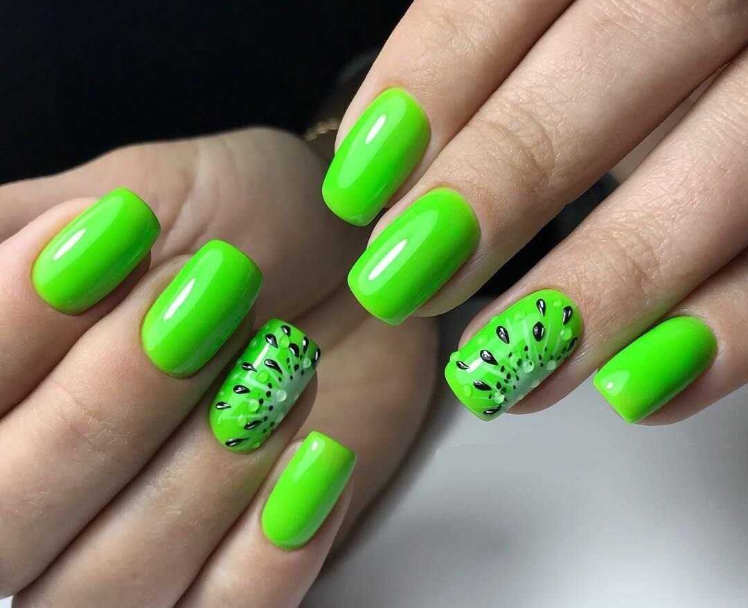 Ярким модницам стоит попробовать неоновые оттенки зеленого цвета, которые на небольшой длине будут выглядеть стильно и слегка эпатажно, привлекая взгляды окружающих.