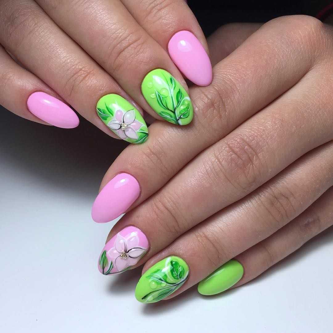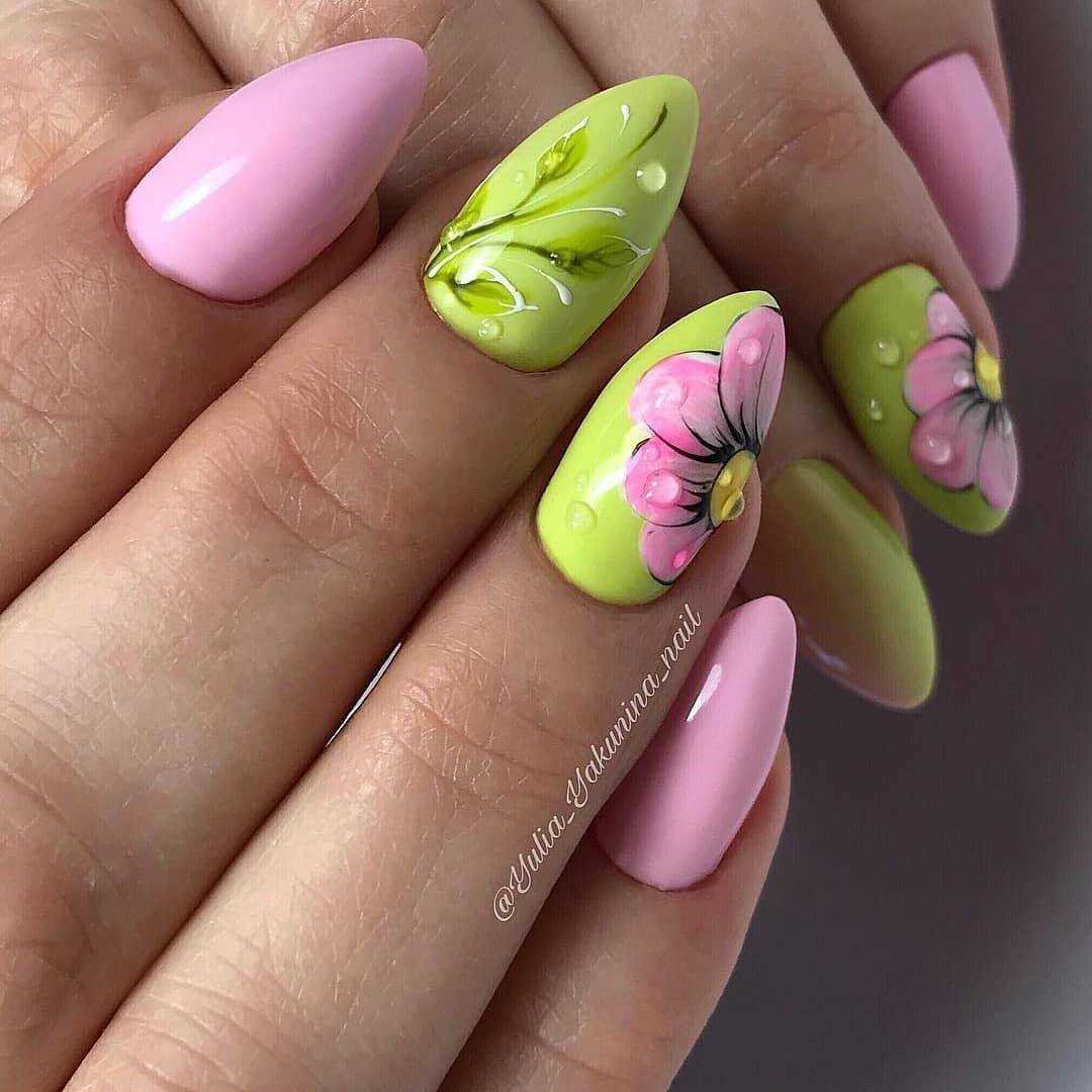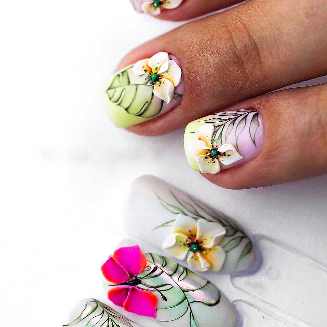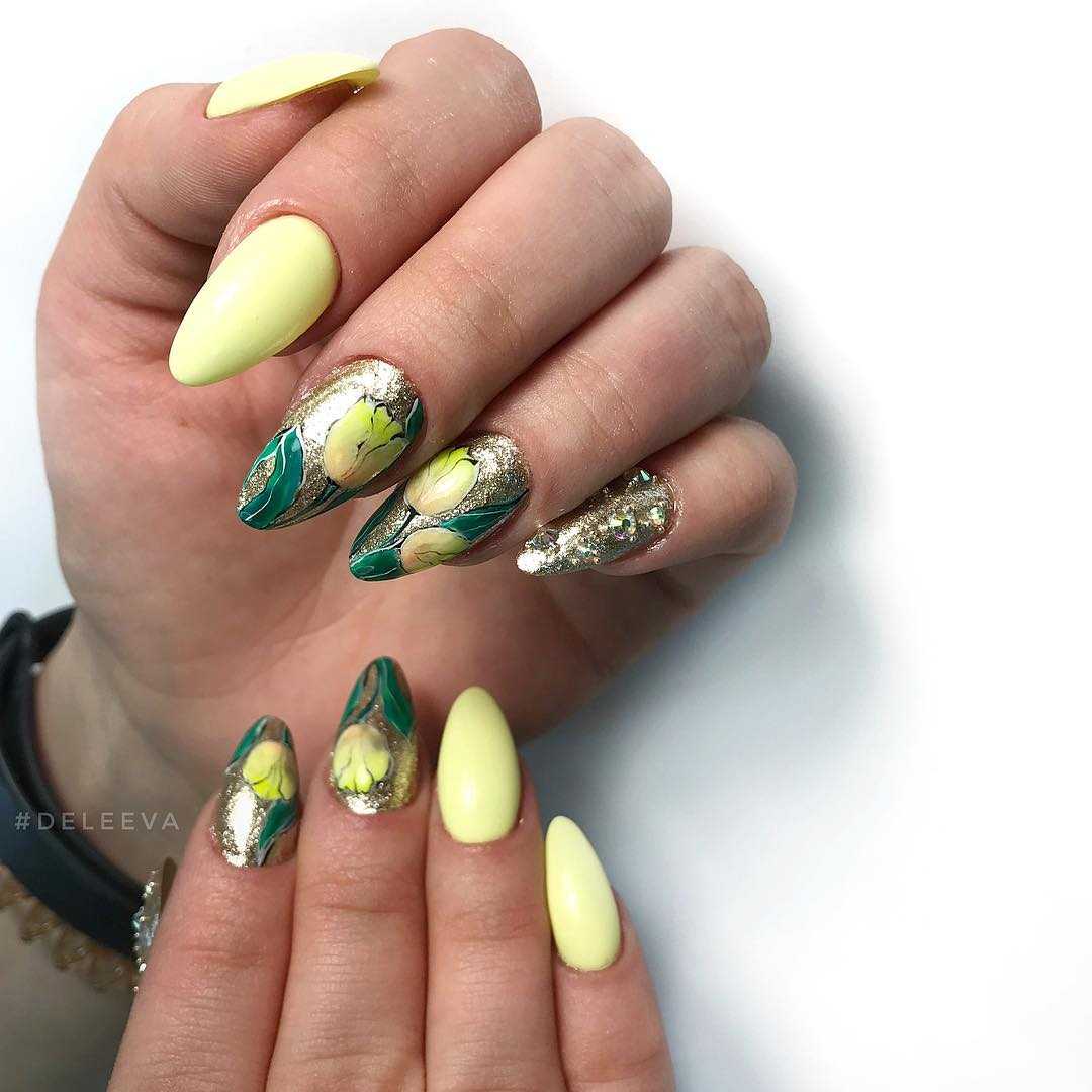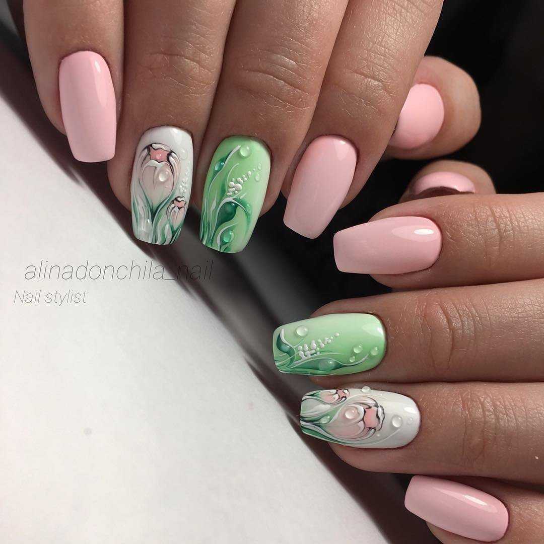 Зеленый маникюр с цветами пользуется невероятной популярностью среди ярких и неординарных особ. Такой маникюр в сочетании с цветочными рисунками создает невероятную композицию. Фантастический маникюр в зеленой палитре можно смело сочетать с другими цветами, а также применять декор в виде страз, бусинок, камифубуков, конфетти и глиттера. Нежный и невероятный дизайн утонченно впишется в различные образы и подчеркнет изящность и неординарность девушки.