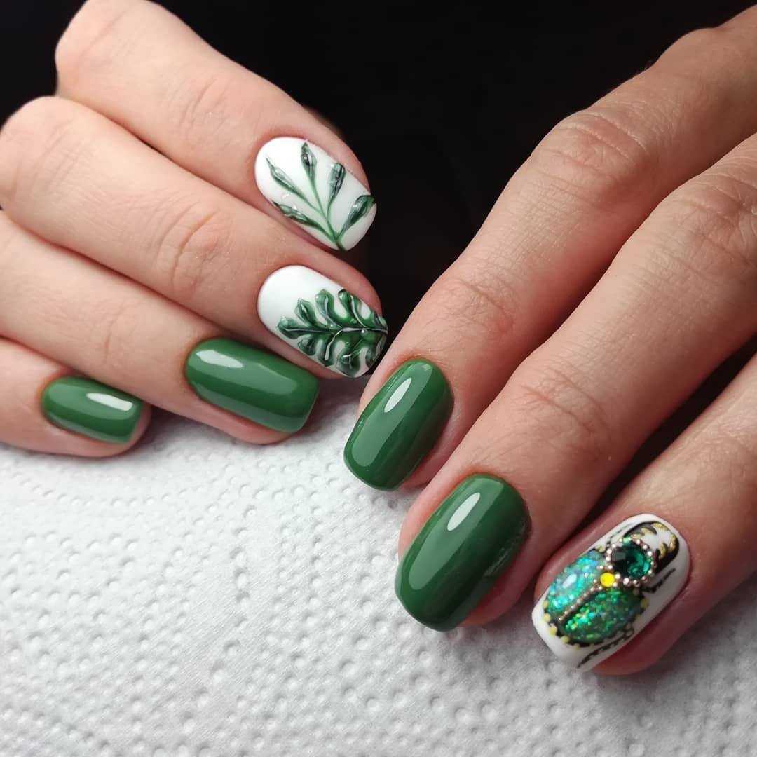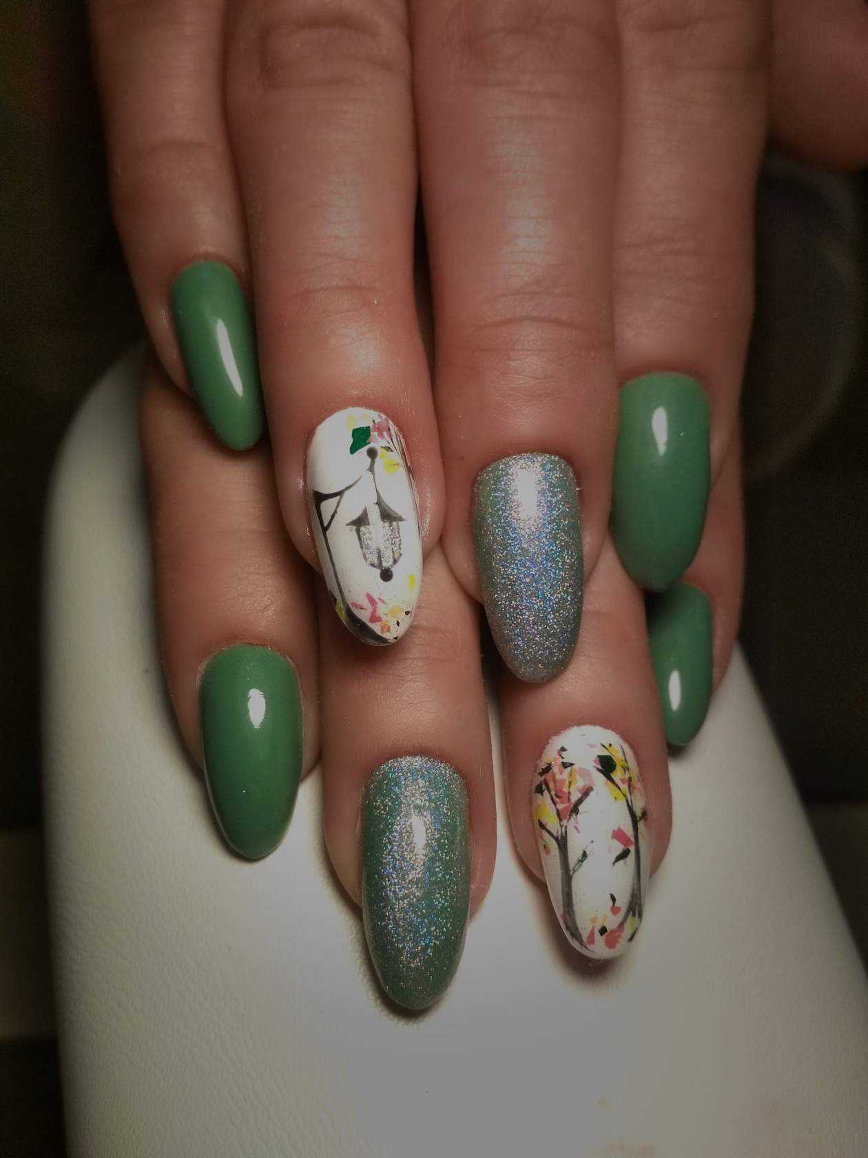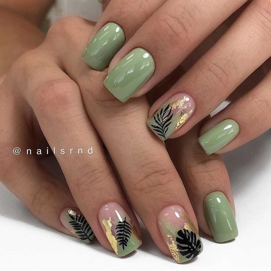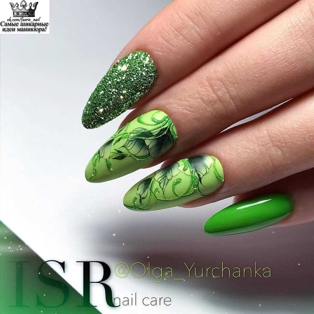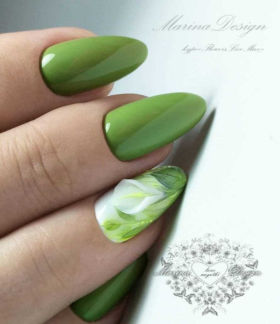 Модные идеи зеленого маникюра с рисунком 2022 фото