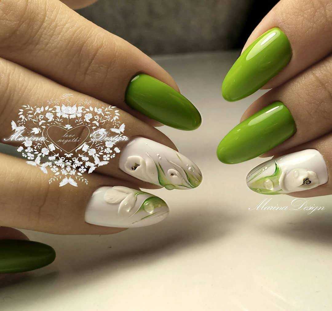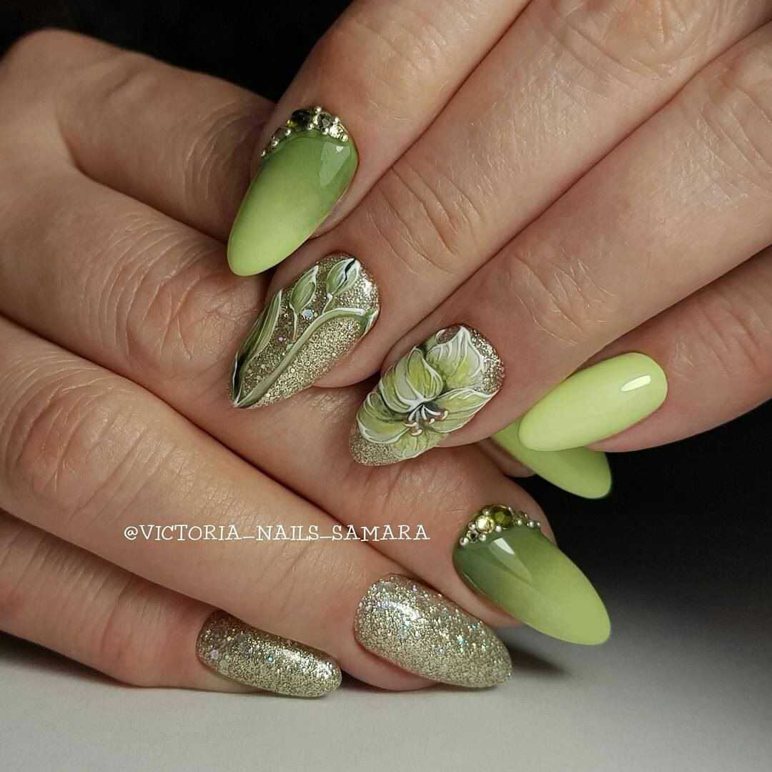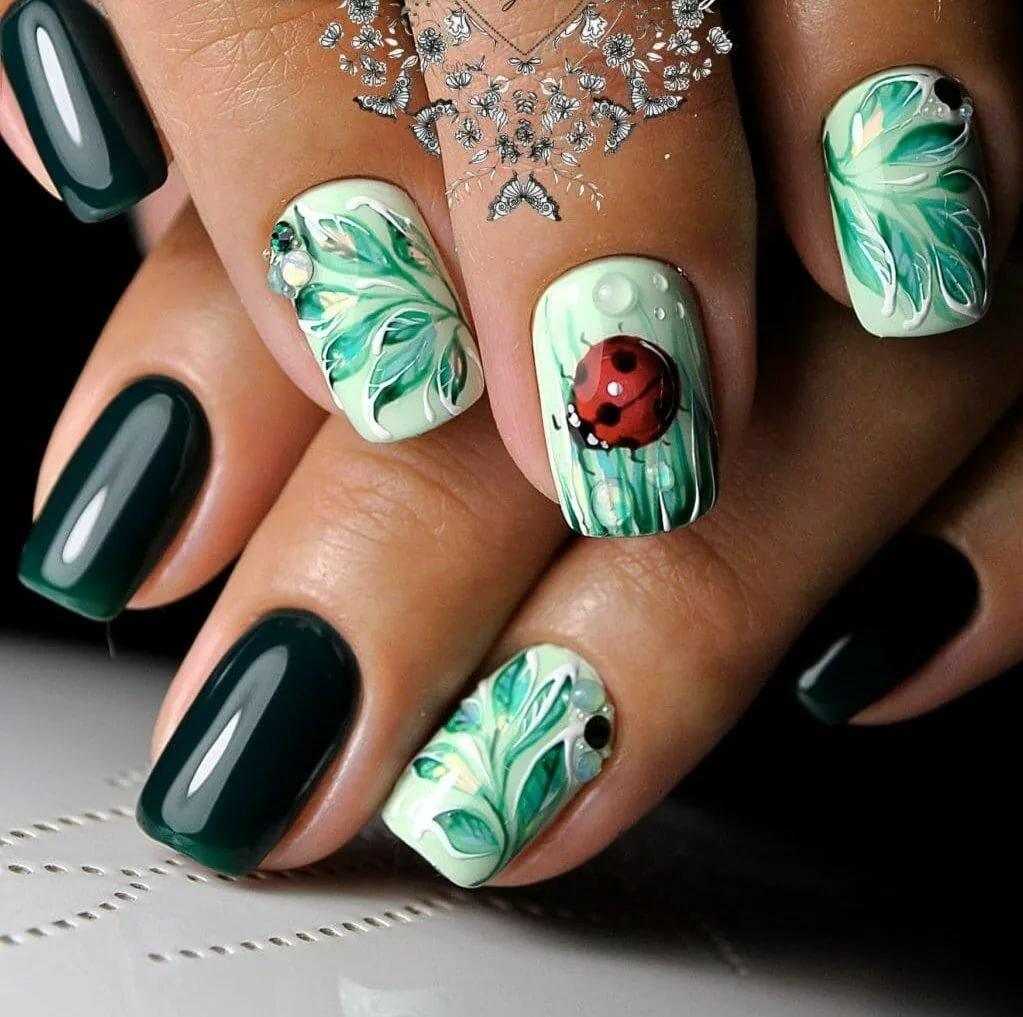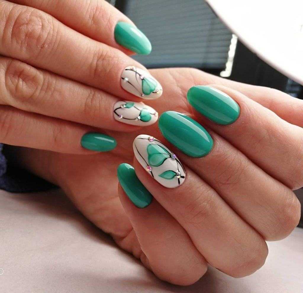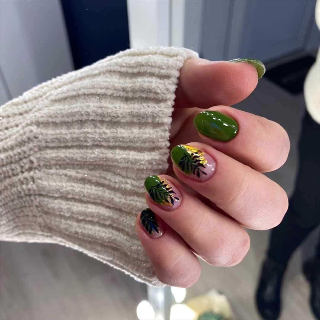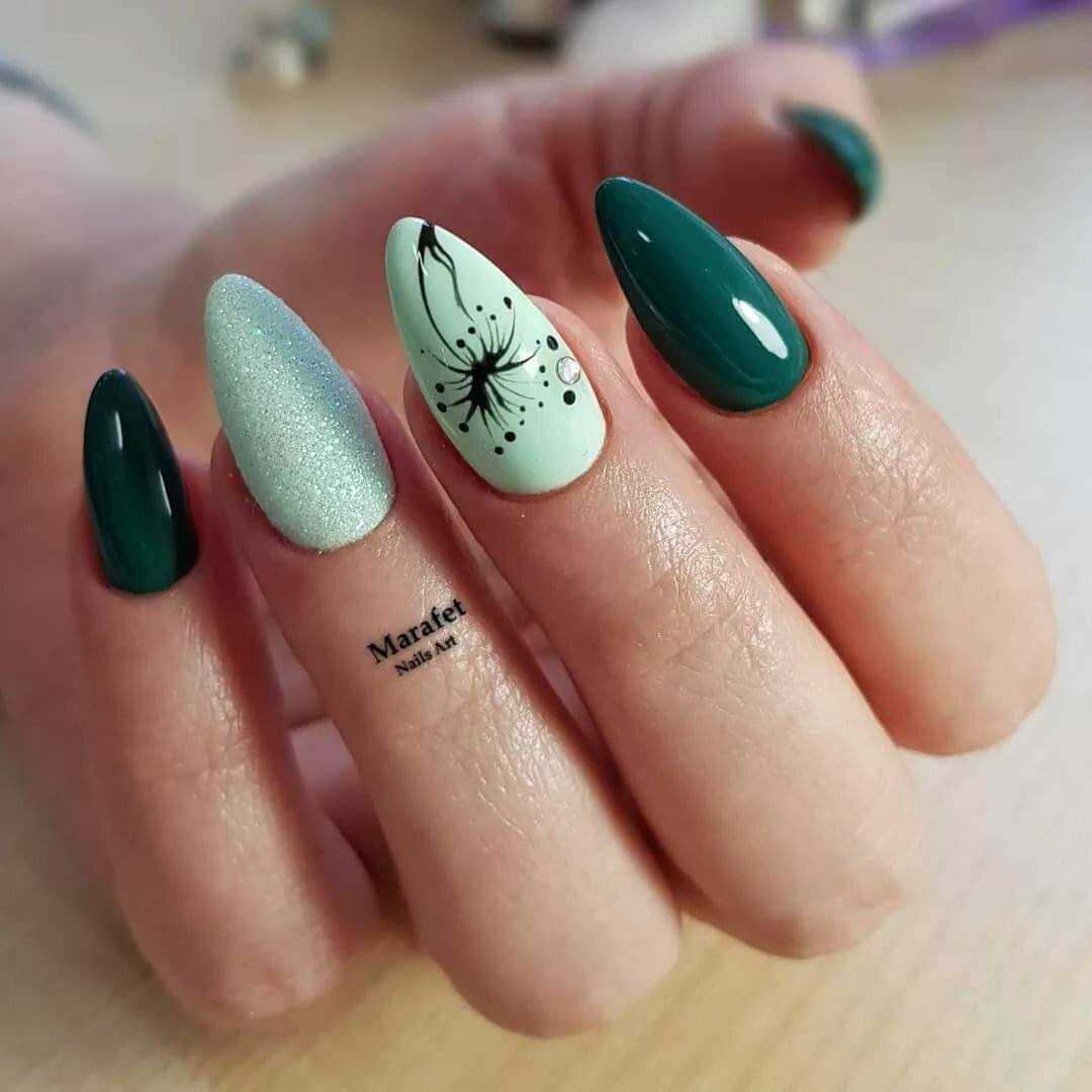 Модные идеи зеленого маникюра с рисунком 2022 фото