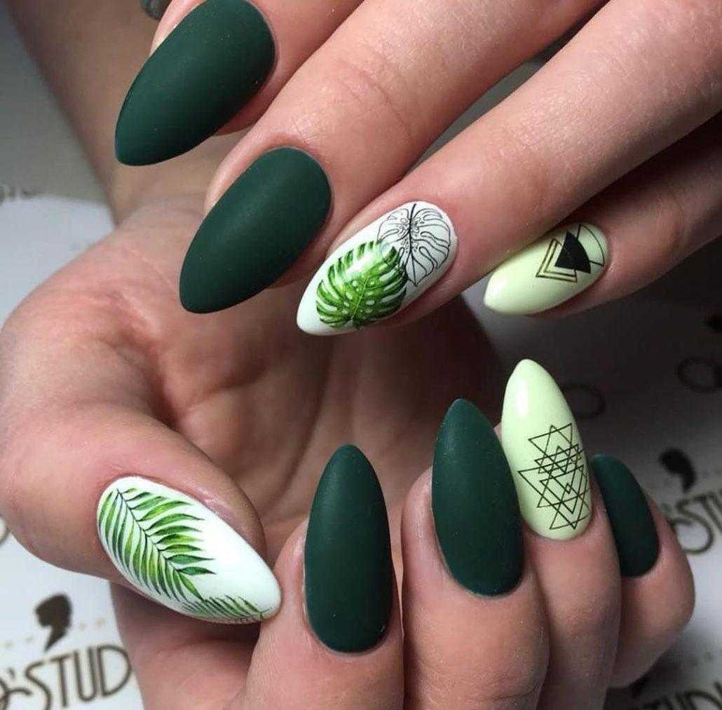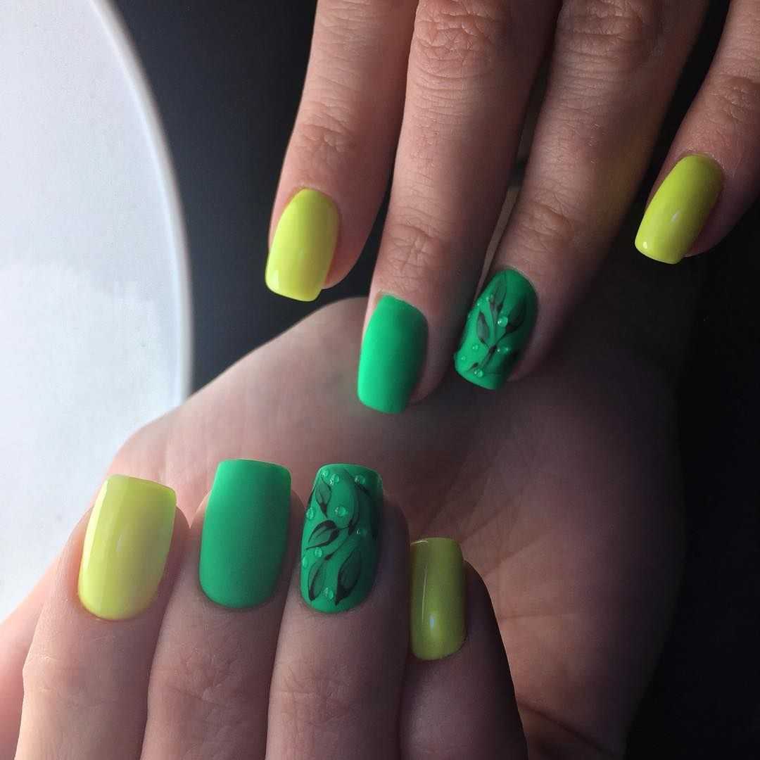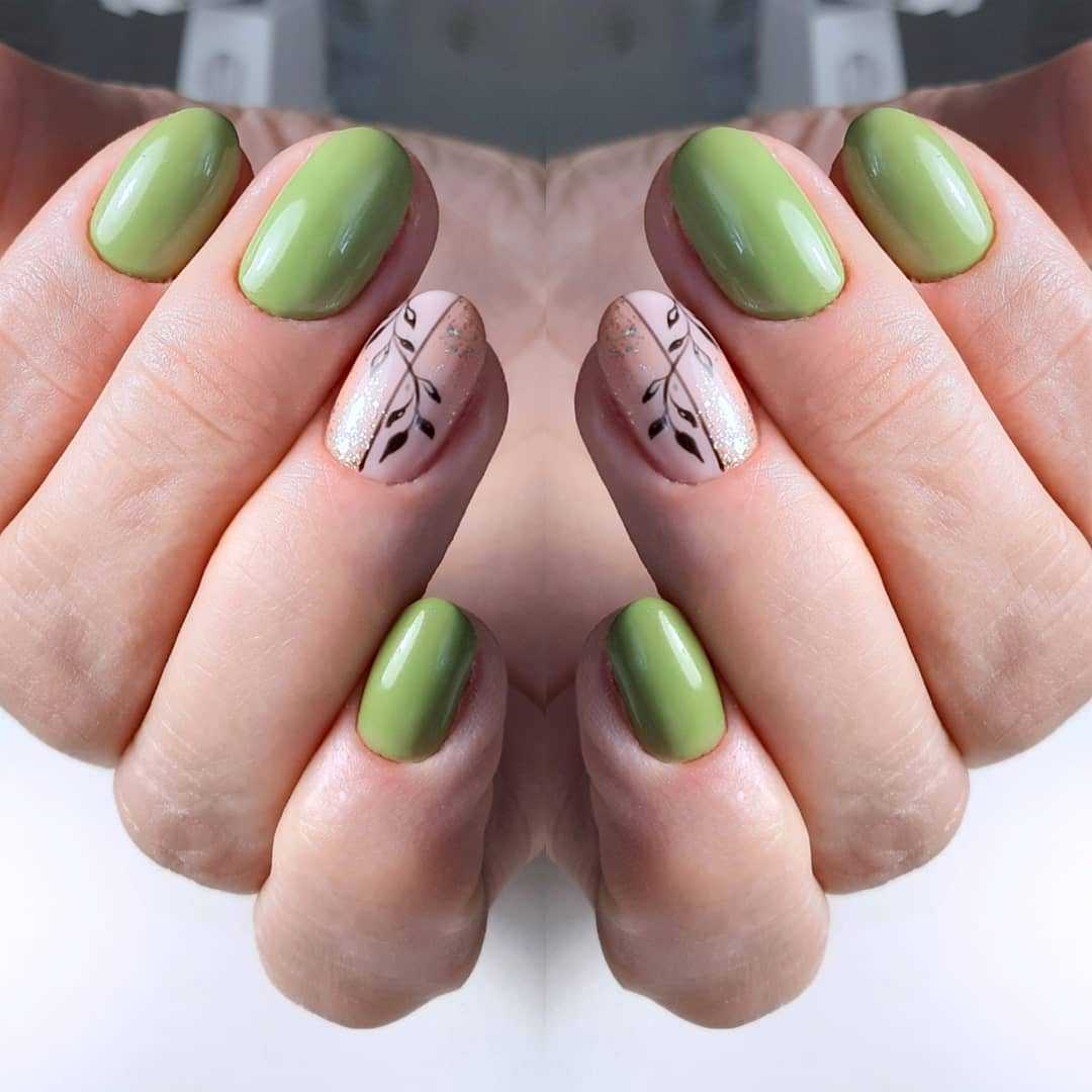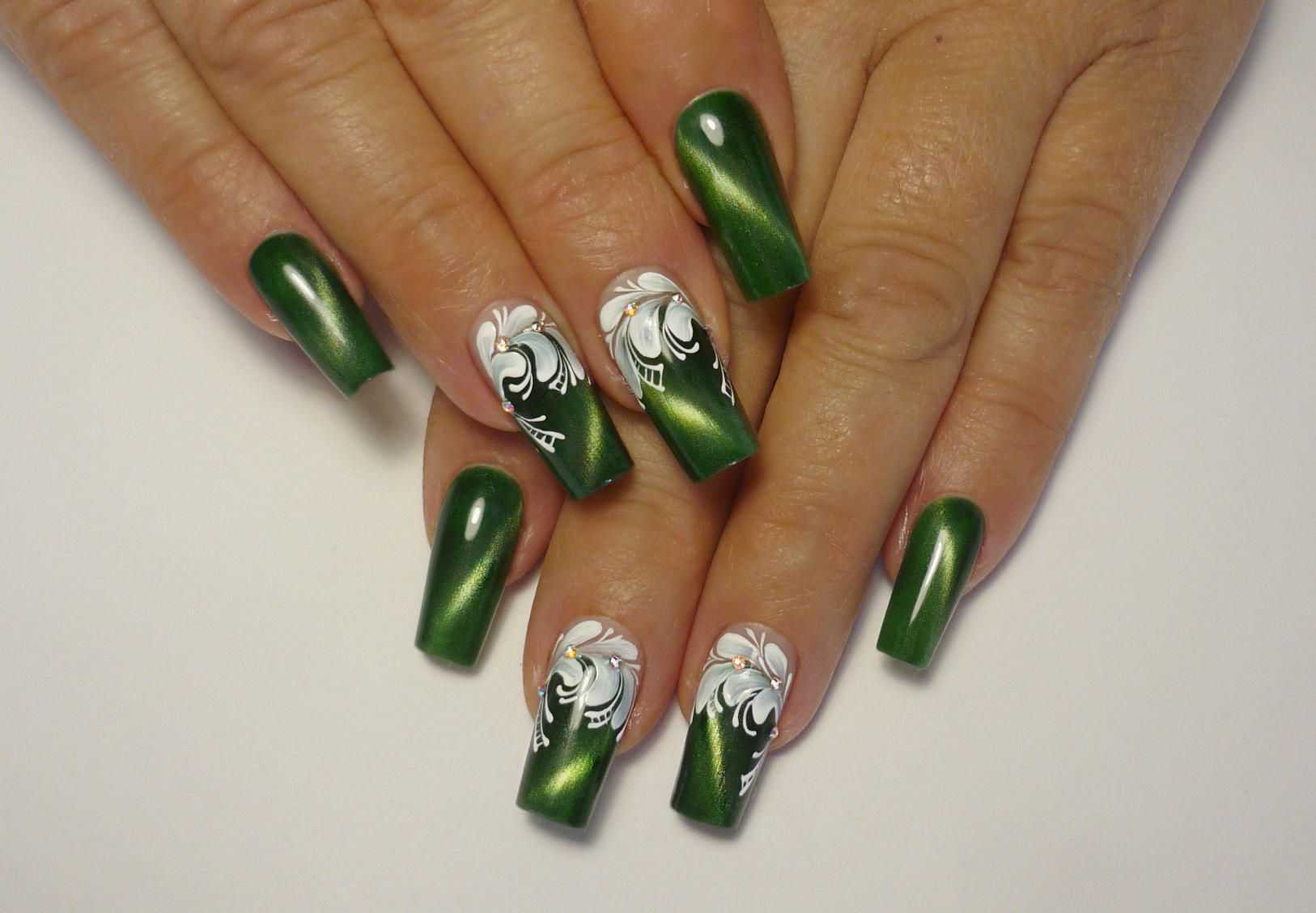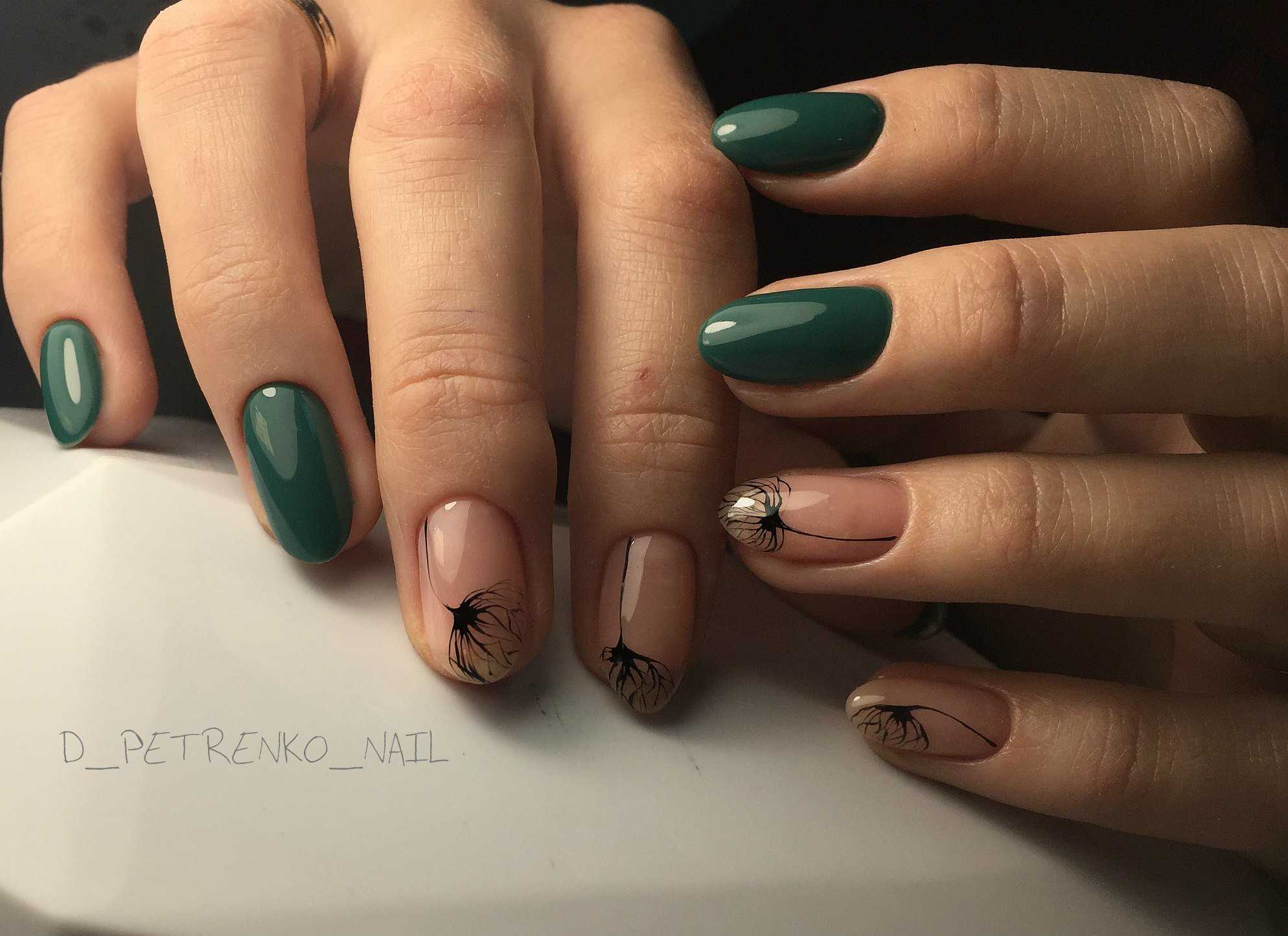 Модные идеи зеленого маникюра с рисунком 2022 фото
