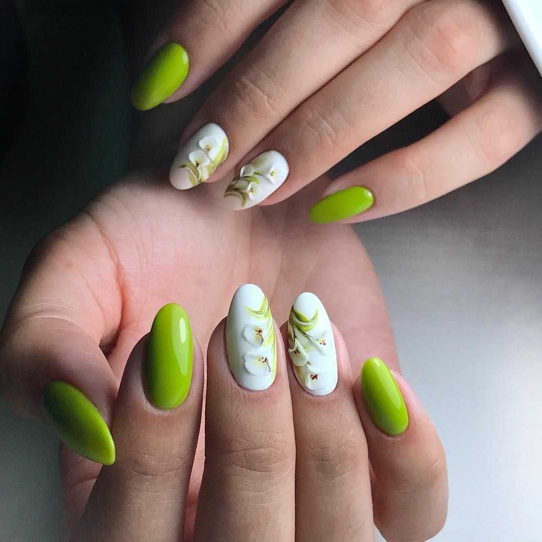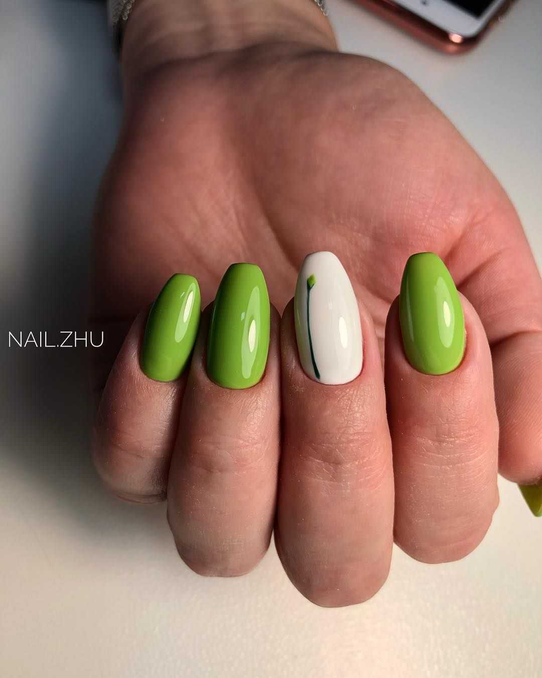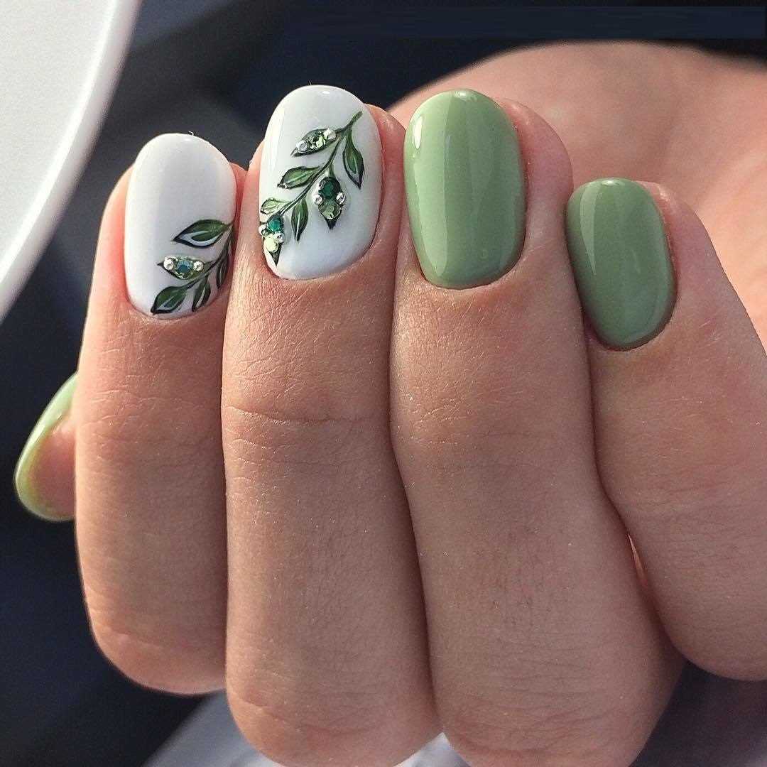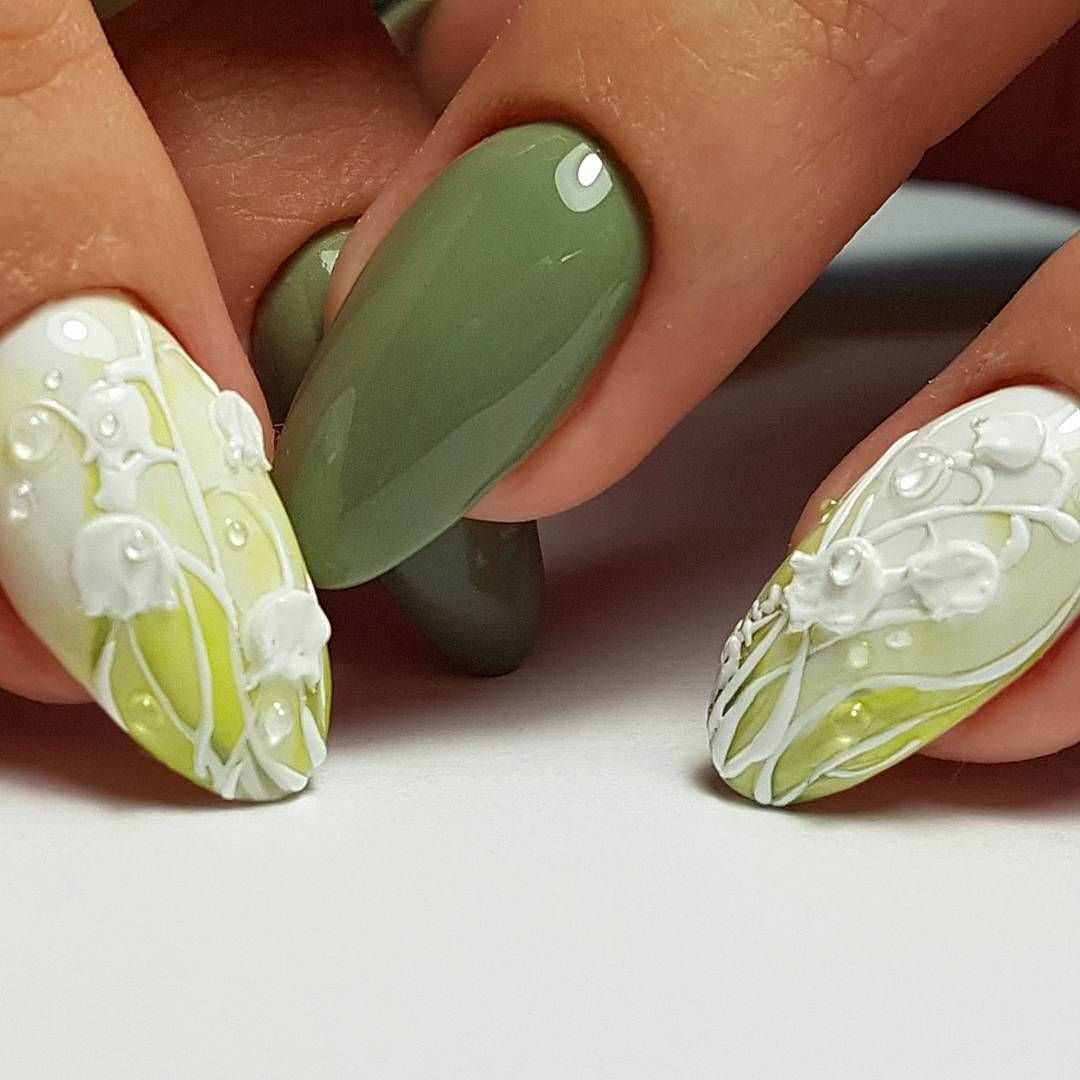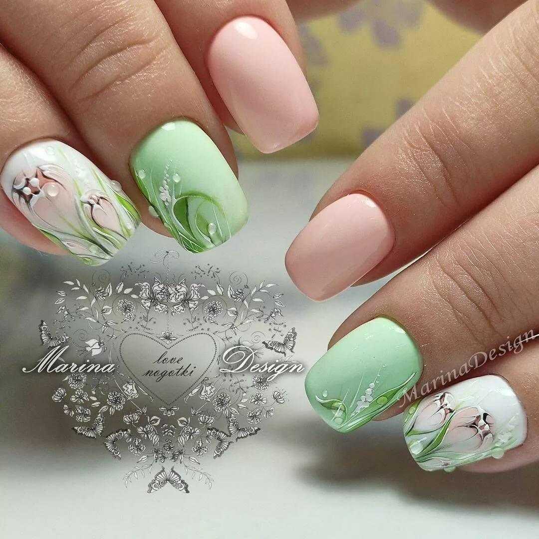 Модные идеи зеленого маникюра с рисунком 2022 фото