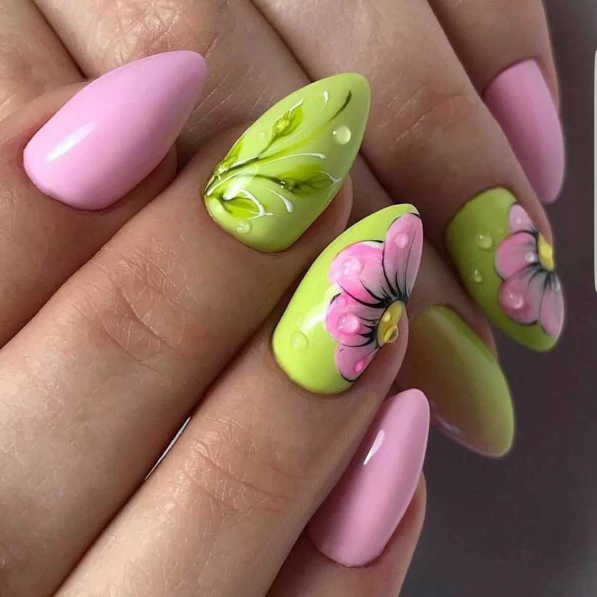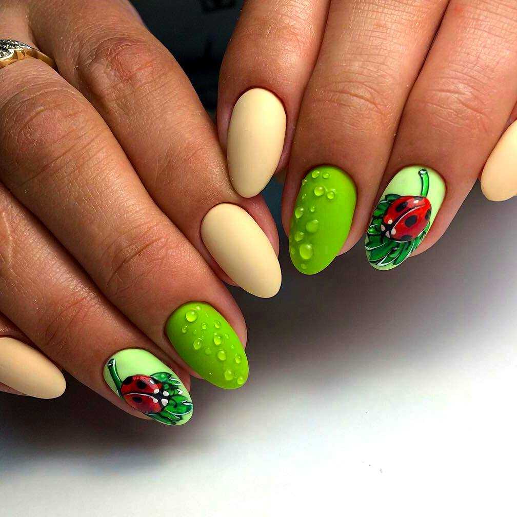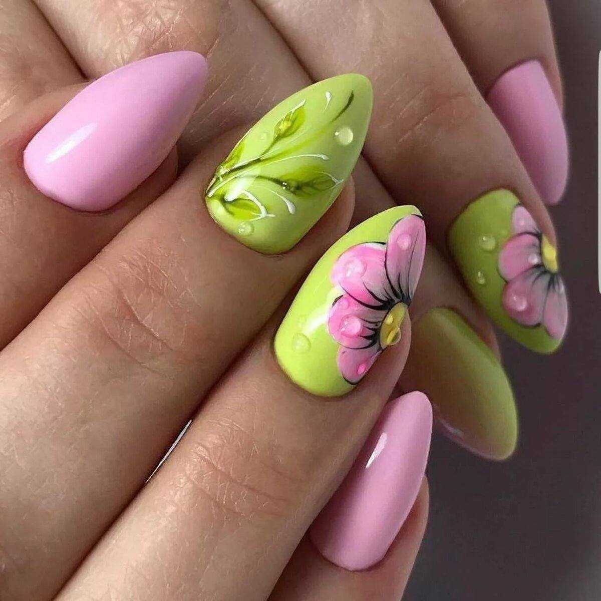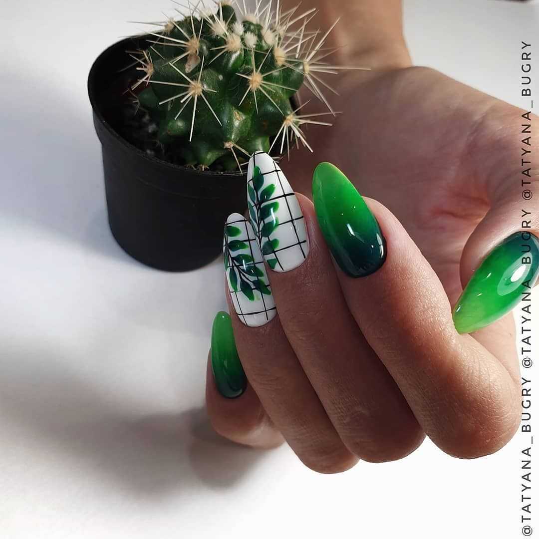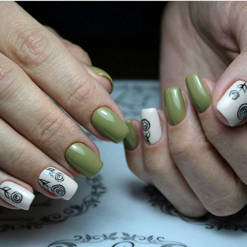 Модные идеи зеленого маникюра с рисунком 2022 фото