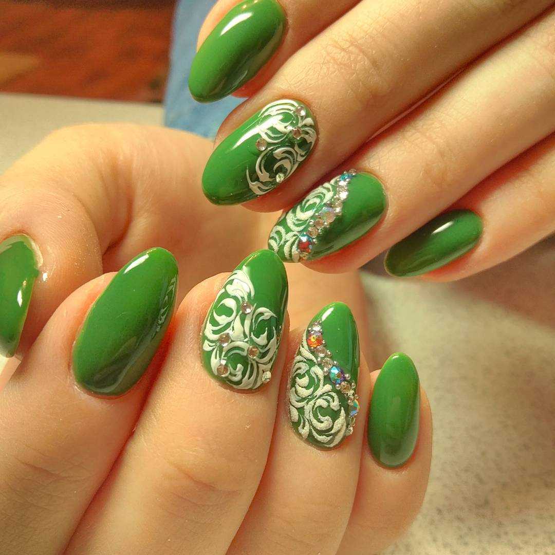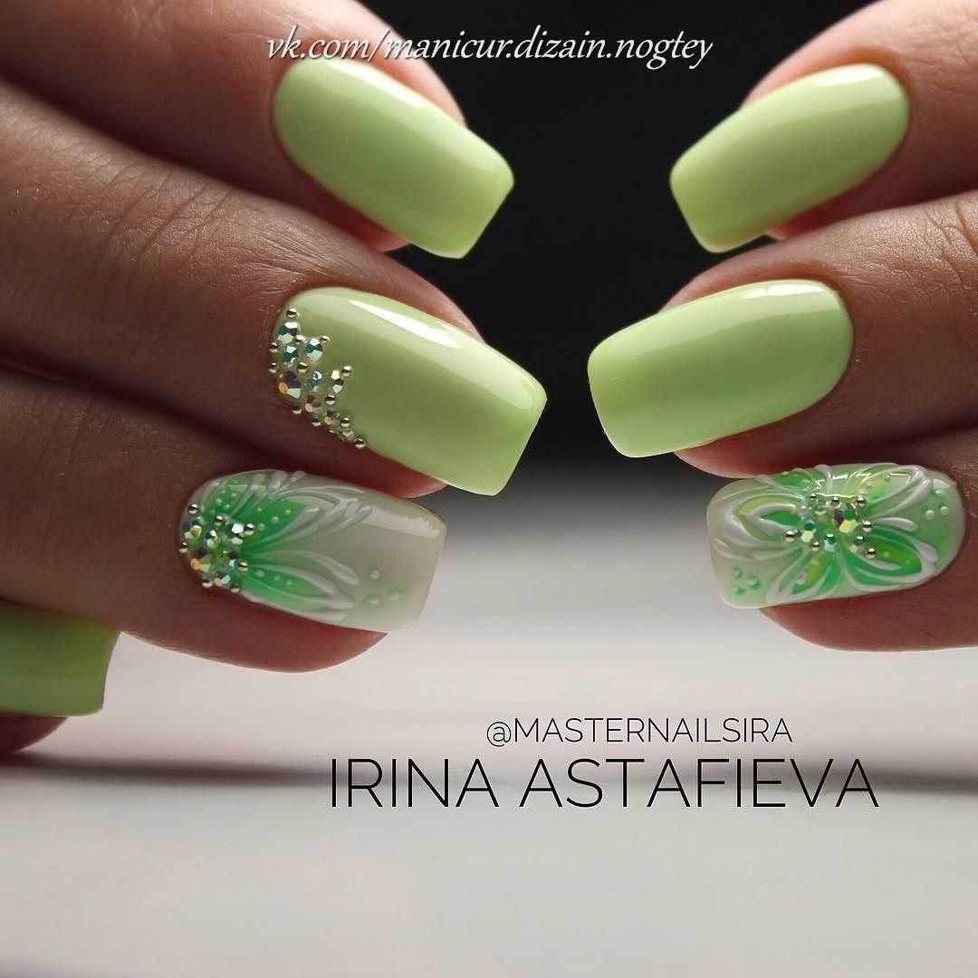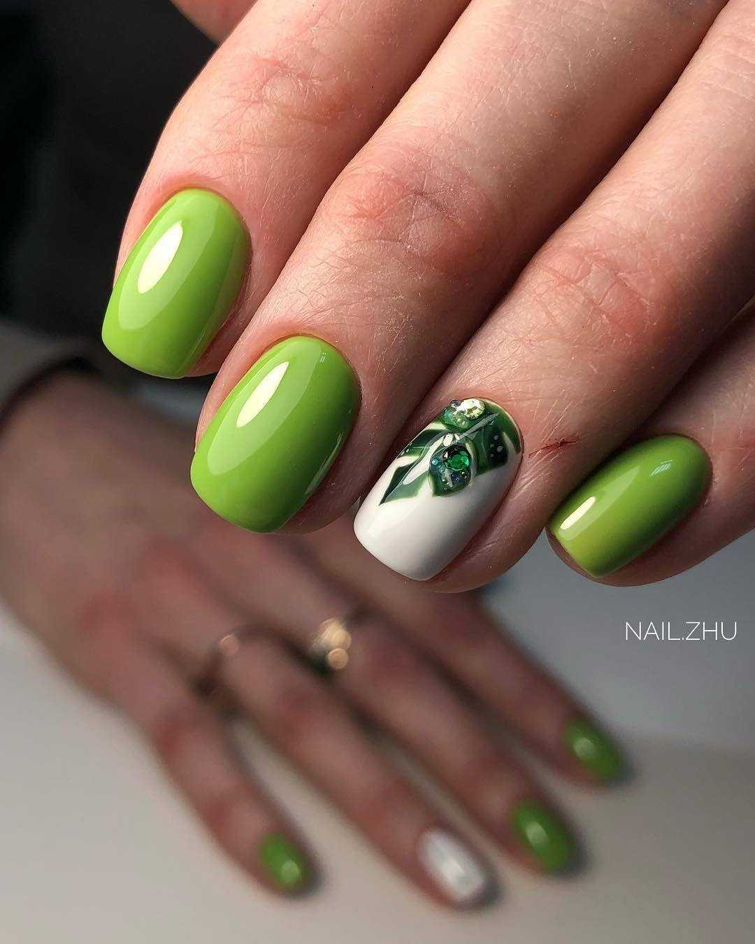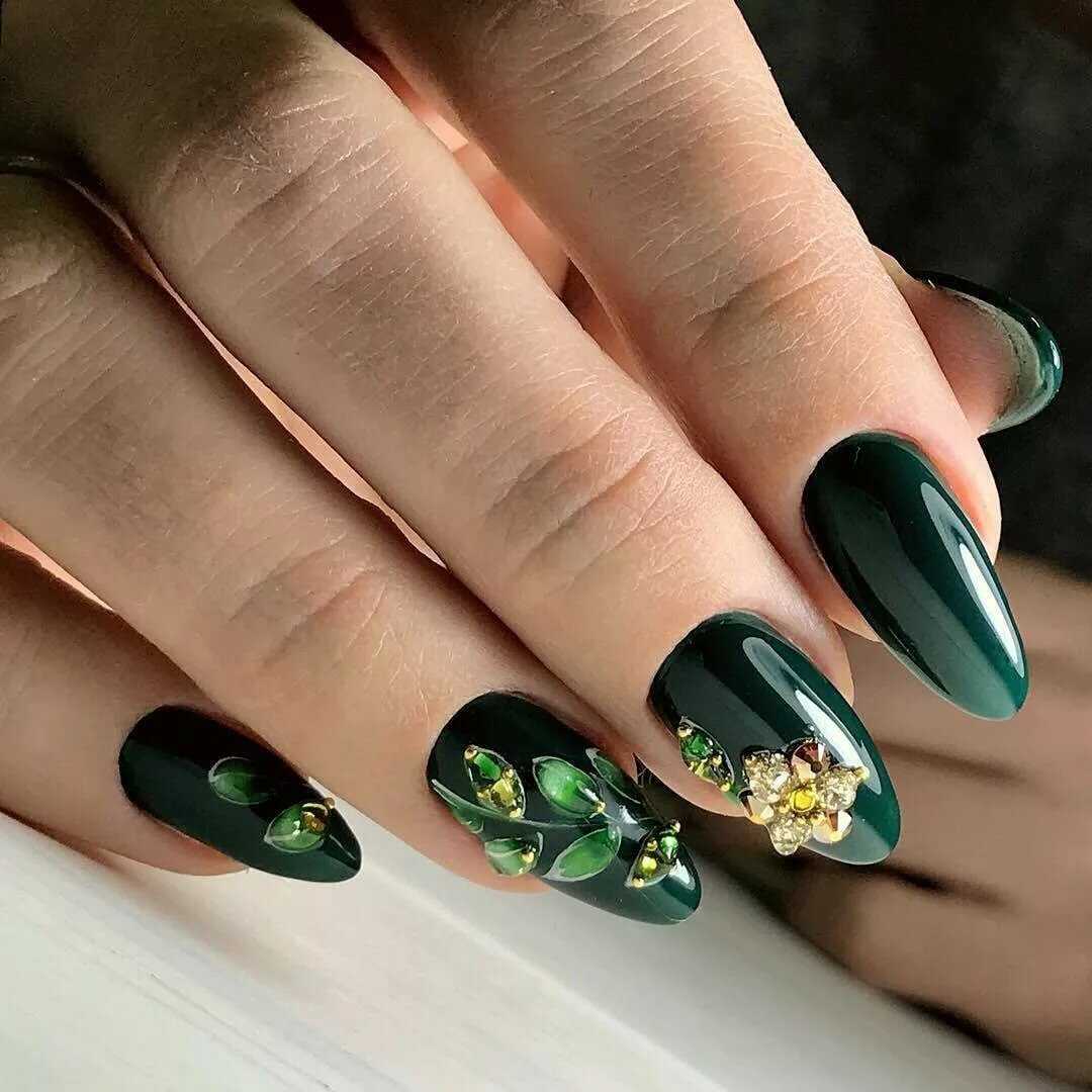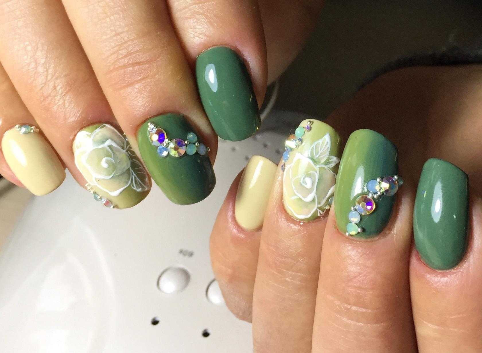 Маникюр зеленый с камнями 2022 классные варианты идеи фото