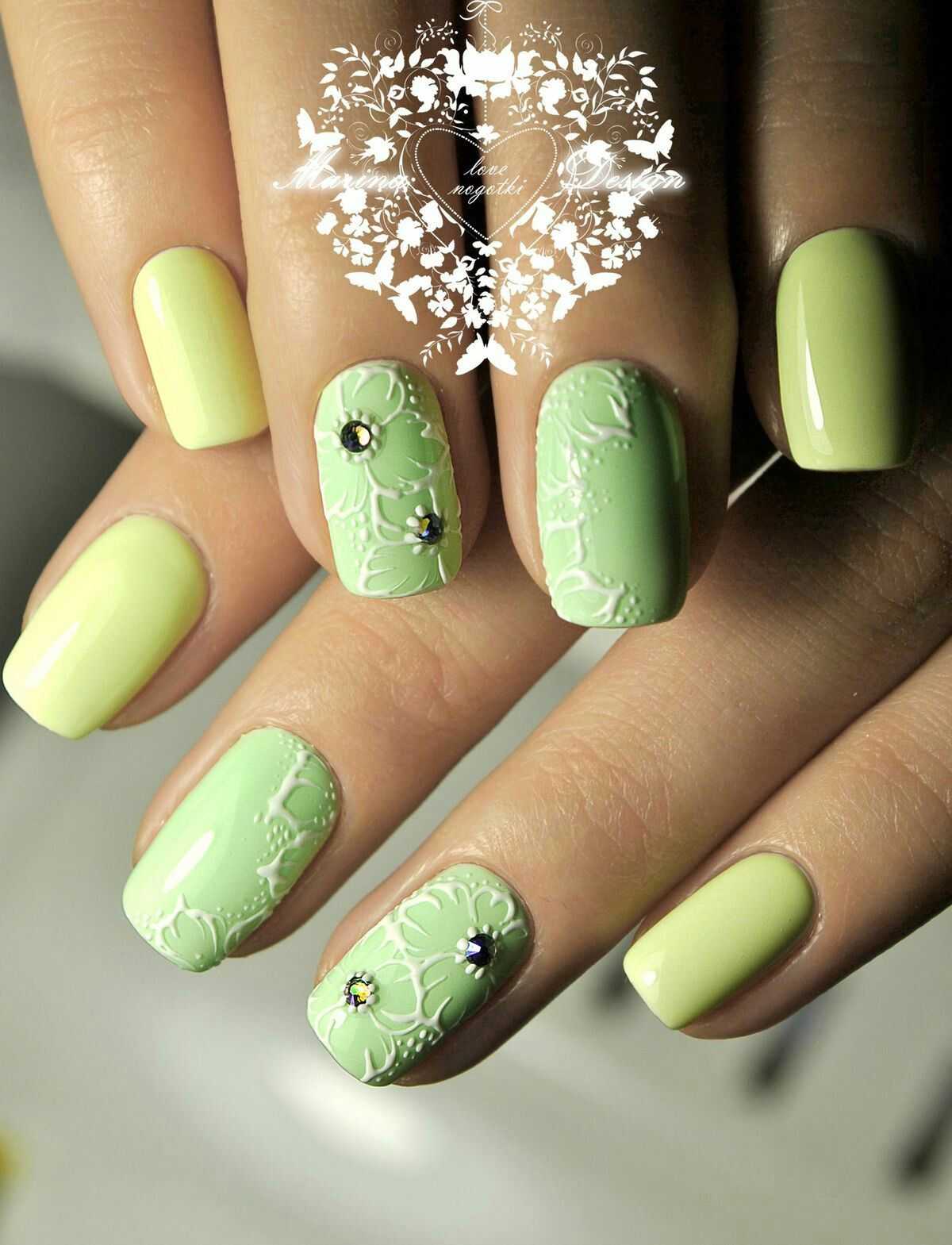 А вам нравится зеленый цвет на ногтях? Какой маникюр в зеленой гамме вам ближе — с рисунком или без? Напишите комментарий.