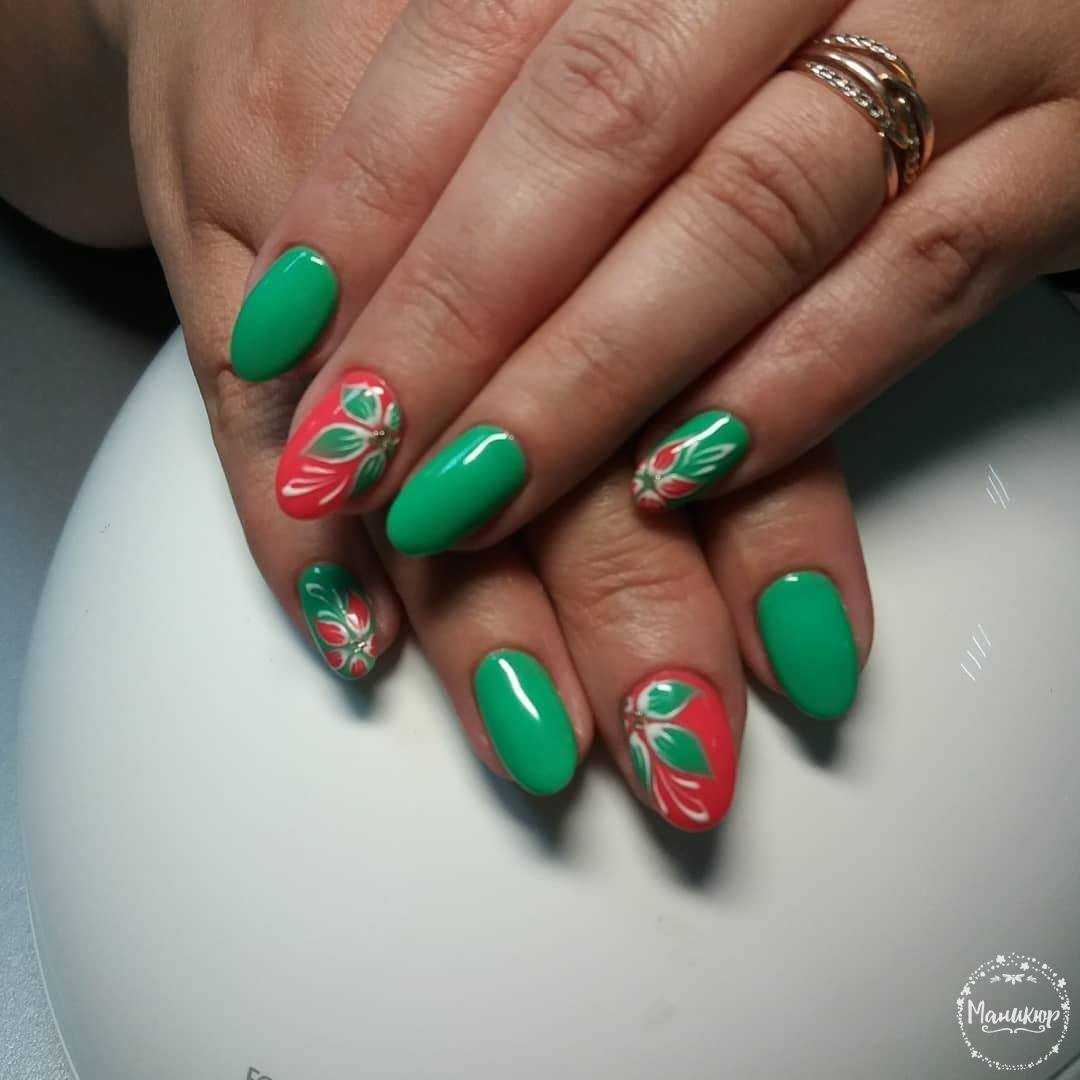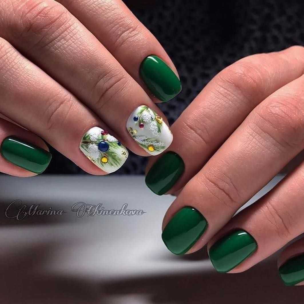 Новогодний маникюр в зеленом цвете 2022 фото модные варианты идеи